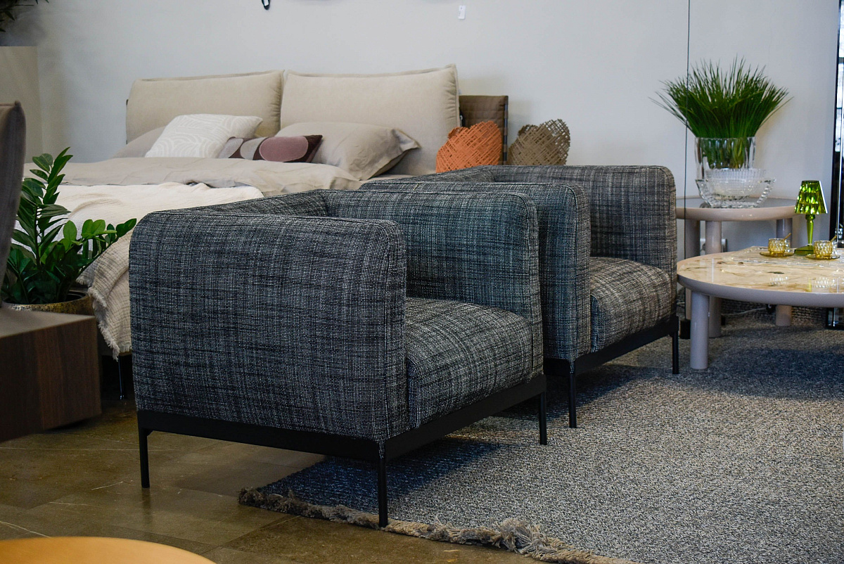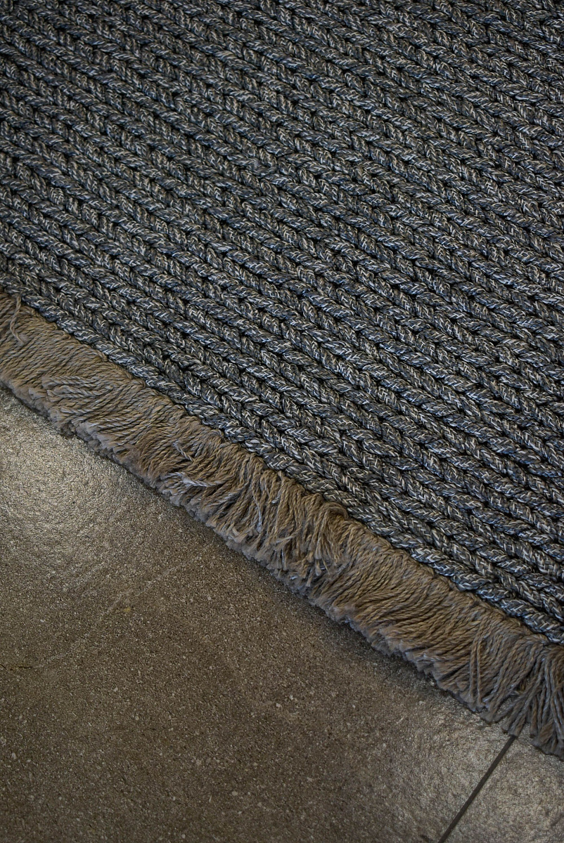 Коллекцию дополняет ковер K-LIM в версиях для внутреннего и наружного использования, полностью изготовленный из 100% переработанной пряжи ПЭТ, обладающей удивительной мягкостью. Ковер доступен в двух размерах и двух цветовых решениях: темно-сером с бежевой бахромой и светло-сером с синей бахромой.