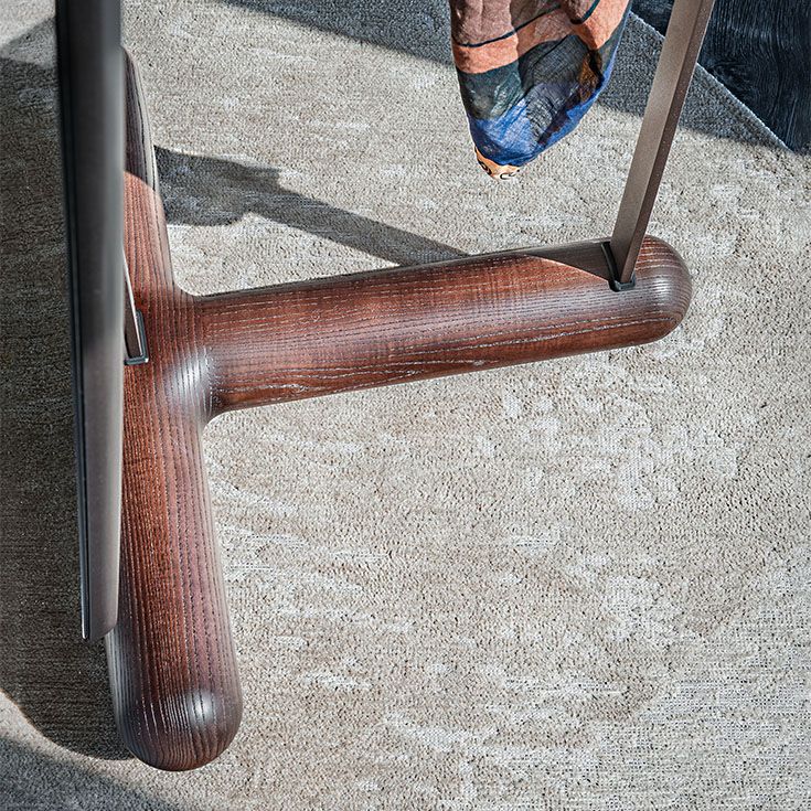 Прочное основание выполнено из дерева и имеет характерную объемную Т-образную округлую форму. В этой композиции все продумано до мелочей: даже металлические ножки, которые не скрыты, а дополнены хромированной отделкой, создавая эстетически элегантное световое пятно на полу.