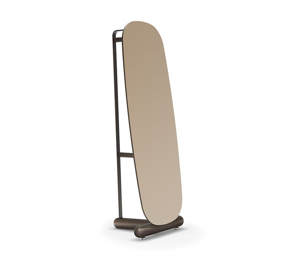 Зеркало "немой слуга" Pierre представляется спереди как большая отражающая поверхность с мягкими контурами и закругленными углами. Значительный размер вертикального зеркала и небольшой наклон создают отражение комнаты, расширяя ее границы и увеличивая яркость и простор.