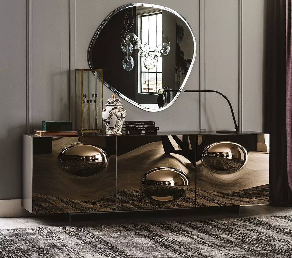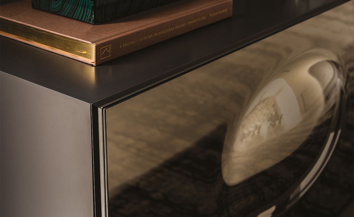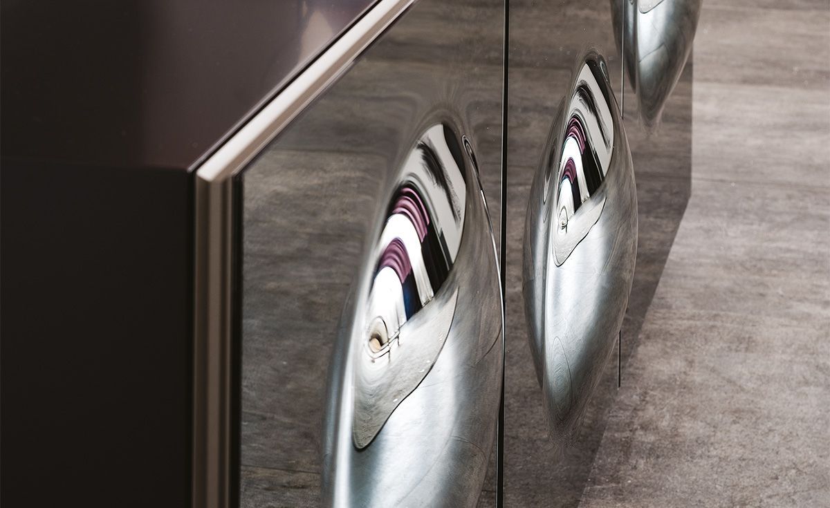 Paramount - это выражение дерзкого, но изысканного дизайна. Дверцы, придающие структуре характер и ритм, изготовлены из выпуклого стекла, благодаря искусной технологии изготовления. Paramount - это современный комод, который может быть покрыт разнообразной отделкой на выбор, матовой или глянцевой, причем последняя отражает окружающую среду в сюрреалистической игре зеркал. Ценные материалы, из которых изготовлены внутренние и внешние полки и основание, наглядно демонстрируют, что этот современный стеклянный комод является результатом высокого качества итальянского производства.