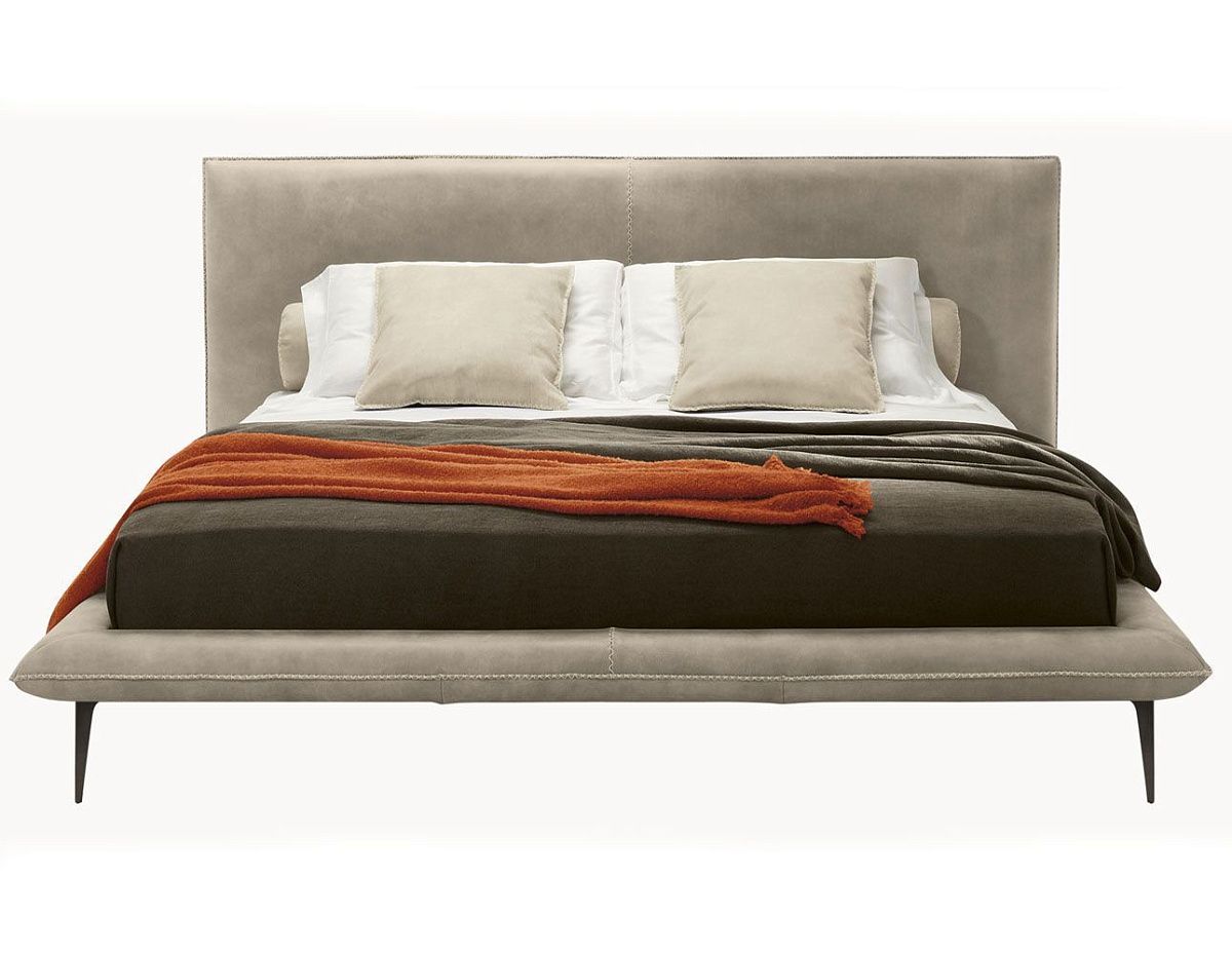 Современная двуспальная кровать на деревянном основании и хромированных металлических ножках Alfred от Gamma Italia. Набивка выполнена полиуретаном, обивка - кожей. Возможен вариант обивки изделия в кожу разных видов.