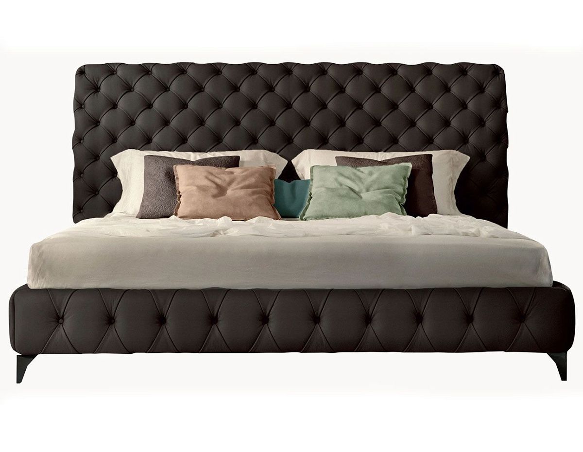 Кровать Aston от фабрики Gamma Italia имеет солидное изголовье выполненное в стиле картеная стяжка. У кровати ровное основание на ножках и матрас вкладного типа. Спинка и основание декорированы каретной стяжкой на мягком объемном слое ППУ.