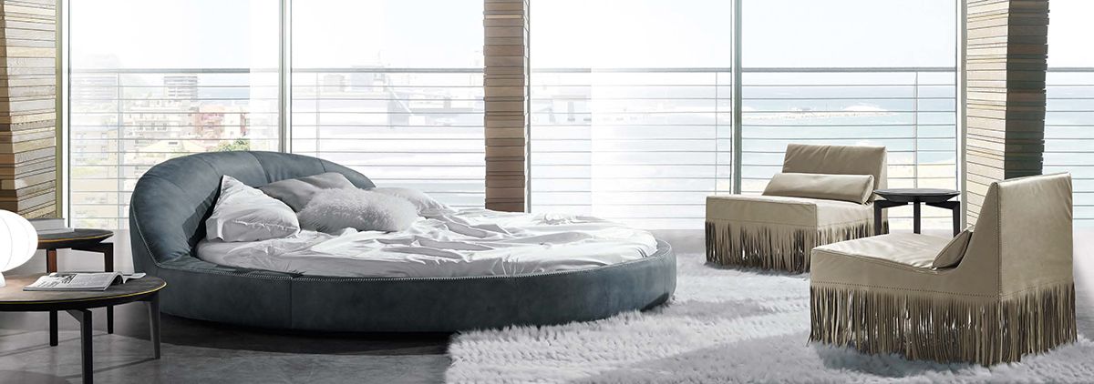 Jazz - оригинальная круглая дизайнерская кожаная кровать от Gamma Italia, которая придаст вашей спальне элегантность и изысканность. Крупные формы подчеркиваются спинкой, повторяющей изгибы остова кровати. Круглая форма кровати Jazz Night также подчеркивается элегантным швом с необработанным краем по периметру.
