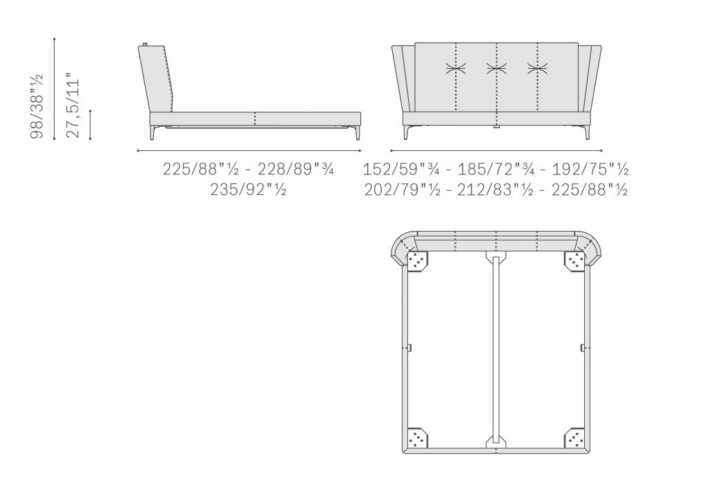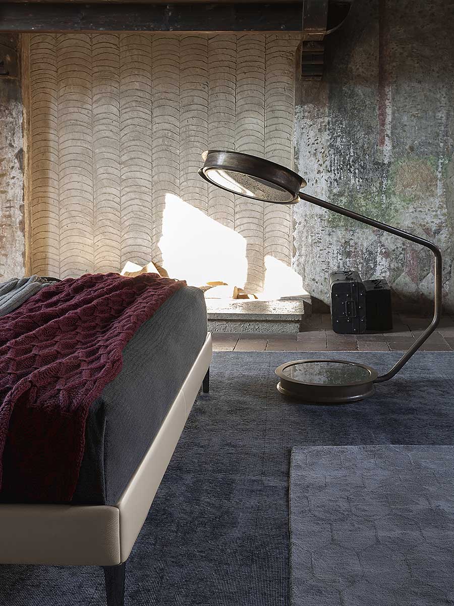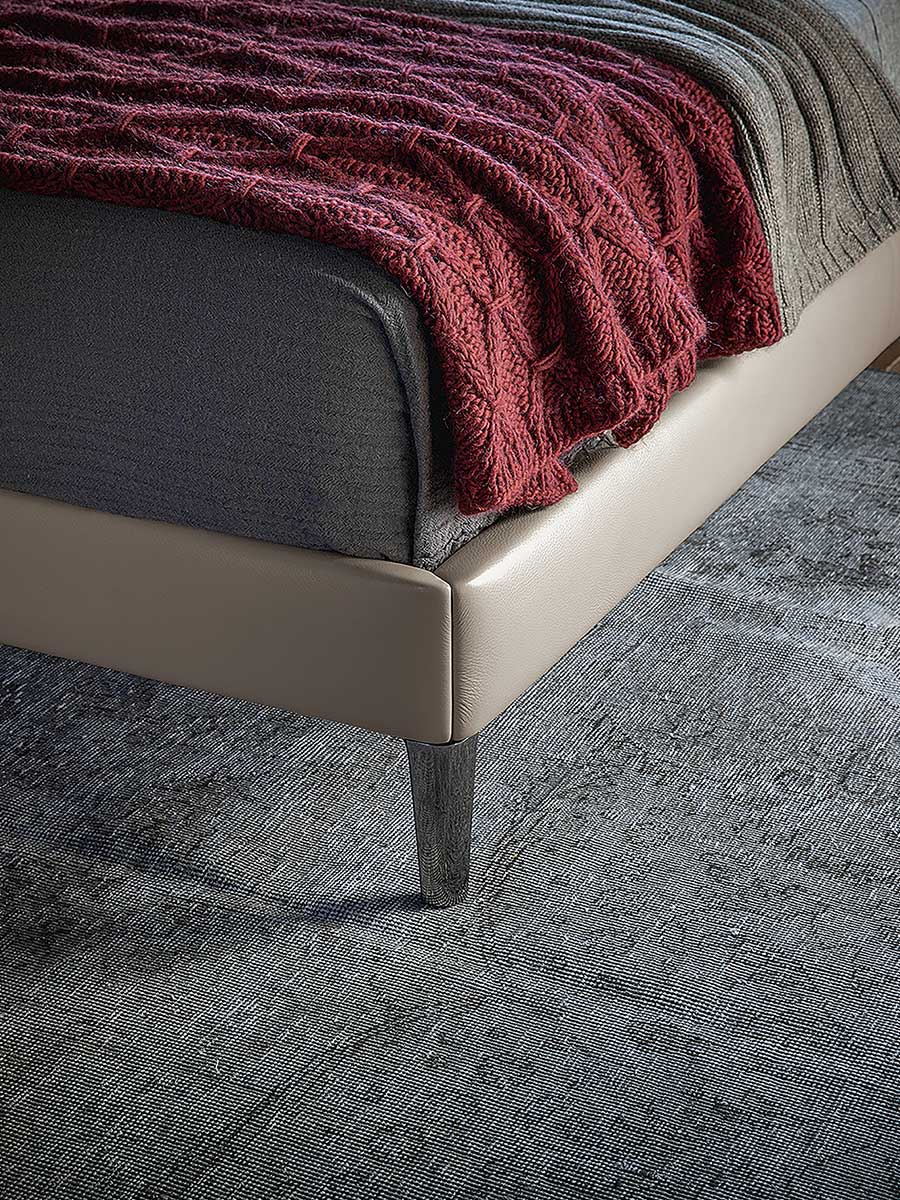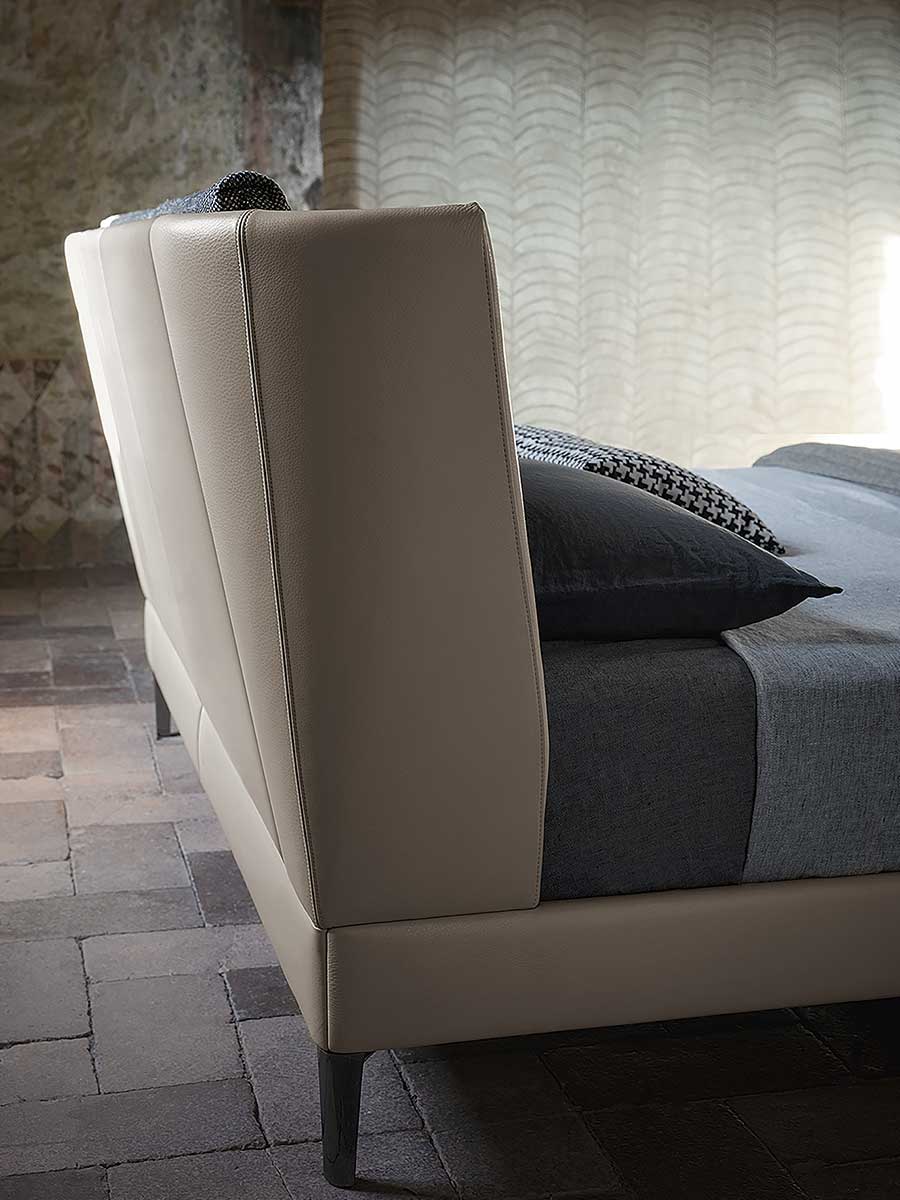Основание кровати Bretagne состоит из еловых досок каркаса и изножья из тополевой фанеры с наполнителем из пенополиуретана. Ножки изготовлены из алюминия с покрытием цвета оружейной стали. Изголовье состоит из каркаса из массива тополя, бука, тюльпанового дерева и березовой фанеры. Наполнитель выполнен из пенополиуретана и синтепона. Подушки изготовлены из пенополиуретана и синтепона. Они крепятся к изголовью с помощью застежек-молний и липучек. Обивка кровати Bretagne создает элегантный декоративный эффект благодаря сочетанию кожи Pelle Frau® для каркаса и изголовья и съемных тканевых чехлов для подушек. В качестве альтернативы доступна версия, полностью обитая кожей.