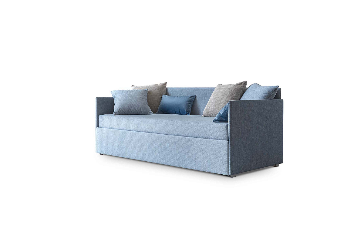 Односпальная кровать с трехсторонней спинкой.
