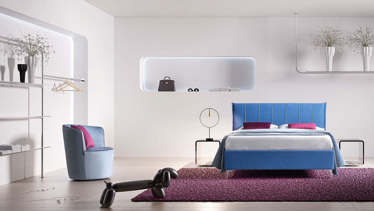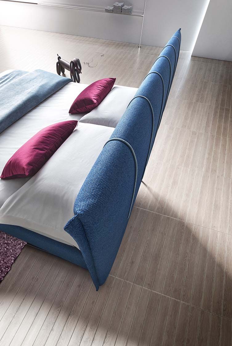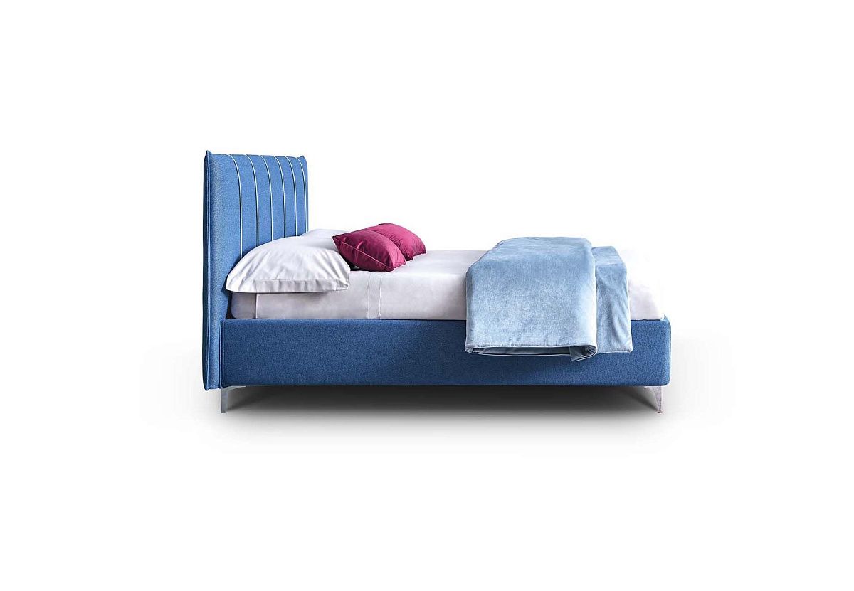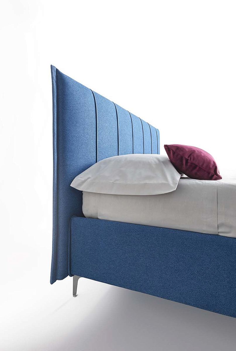 Компактная кровать с мягким изголовьем с вертикальной строчкой.