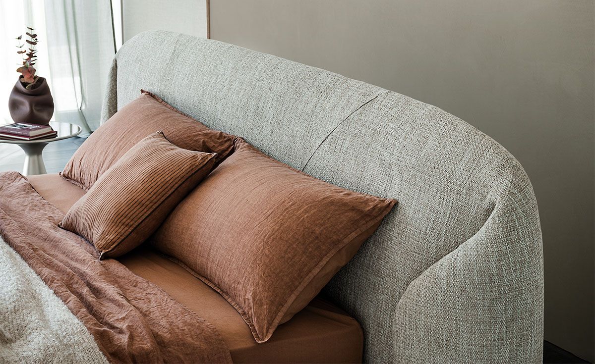 Охватывающей деталью, сразу создающей ощущение мягкости и уюта, является эффект заворачивающегося по бокам мягкого изголовья, образующего два мягких валика и слегка выступающего за пределы каркаса кровати. Richard - это чистая поэзия проекта, в котором мягкие объемы подчеркивает выбор изысканной кожи и мягких тканей с меланжевой пряжей, специально подобранных для современных двуспальных кроватей в монументальном стиле.