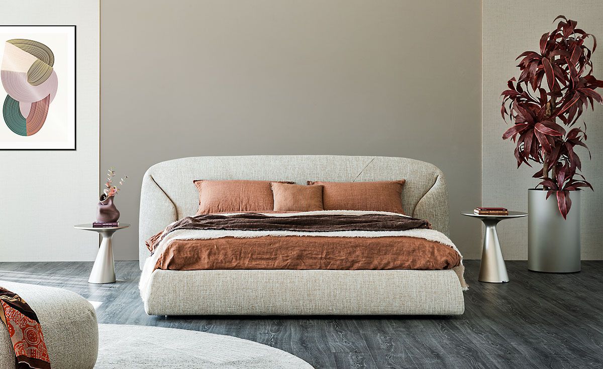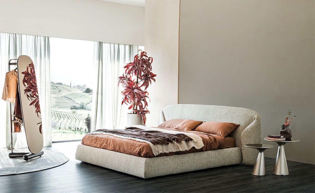 Модель Richard - это двуспальная кровать с подкроватным ящиком без видимых ножек и с широким каркасом, находящимся близко к полу. Края загнуты наружу, расширяя опору в нижней части. Эта деталь, перекликающаяся с изгибом изголовья, создает впечатление, что матрас лежит на приподнятой платформе, как скульптура. Richard - это гармоничный проект, формы которого тщательно проработаны, чтобы создать единство и преемственность между изголовьем и каркасом кровати.