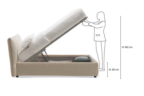 Кровать Sakura отличается современным и лаконичным стилем. Её молодой характер отражается в чистых линиях и мягкой обивке. Изысканная ручная работа придаёт изголовью Soft элегантность. Кровать Sakura, харизматичная и гармоничная, станет главным героем вечера. Для модели дополнительно можно заказать подъемный механизм нескольких видов. Контейнер-коробка — идеальное решение для тех, кто хочет сэкономить место и держать всё под рукой. Его вместительность позволяет оптимально разместить все вещи. Простой и безопасный подъём матраса — обязательное условие для максимально эффективного использования этого практичного пространства. ПОДЪЕМНАЯ СИСТЕМА YPSILON: Эта система поднимает основание и матрас по диагонали, обеспечивая угол раскрытия от 35 до 45 градусов. ТРИПЛЕКСНАЯ ПОДЪЕМНАЯ СИСТЕМА: Эта система сдвигает основание кровати горизонтально, обеспечивая доступ к контейнеру-коробке, в котором подушки и простыни хранятся аккуратно, а также позволяет заправлять кровать, не наклоняясь. ГЛАВНАЯ ПОДЪЕМНАЯ СИСТЕМА: Двойной подъемный механизм ограничивает движение основания кровати только по ее периметру, что обеспечивает значительную экономию пространства и гарантирует все преимущества горизонтального открывания. Контейнер-ящик оснащен съемными панелями, которые можно вынимать и поднимать для более легкой уборки пространства с помощью практичных ручек, доступных из шнура или кожи.