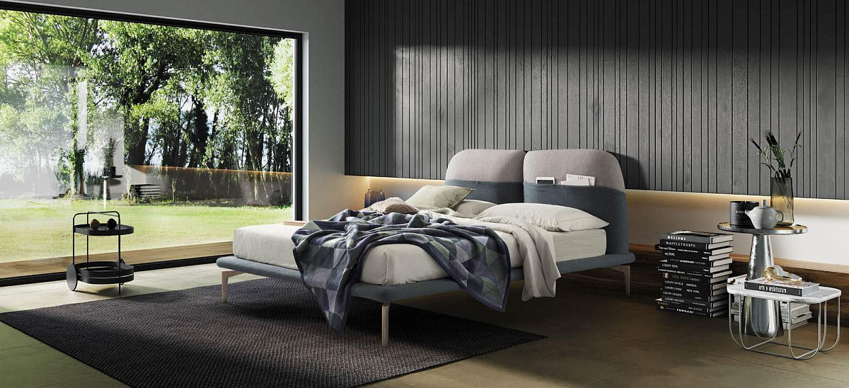 Tahiti — это кровать, в которой гармонично сочетаются форма и функциональность, берущая начало в лучших традициях дизайна. Карман, образующий изголовье мягкой кровати Tahiti, — это одновременно и образ, и практичность, деталь, гарантирующая эффективность. Низкопрофильная рама кровати делает её лёгкой, создавая ощущение воздушности и современности.