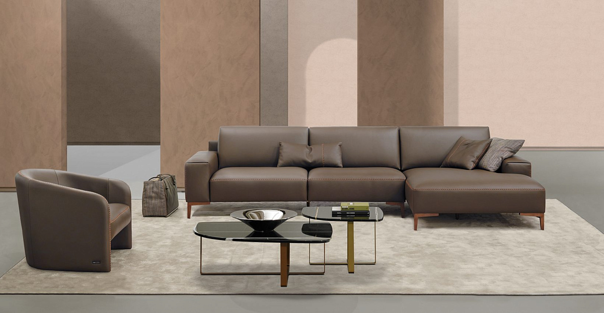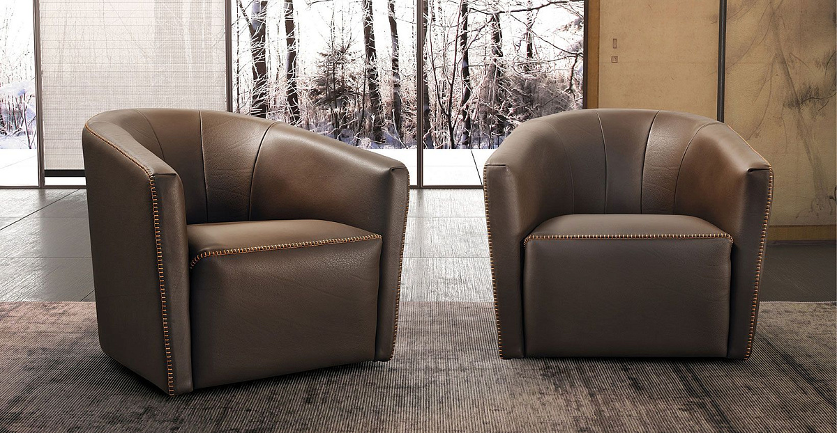 Кожаное кресло с ровными линиями, украшенное таким портняжным элементом, как шов Punto Cavallo.