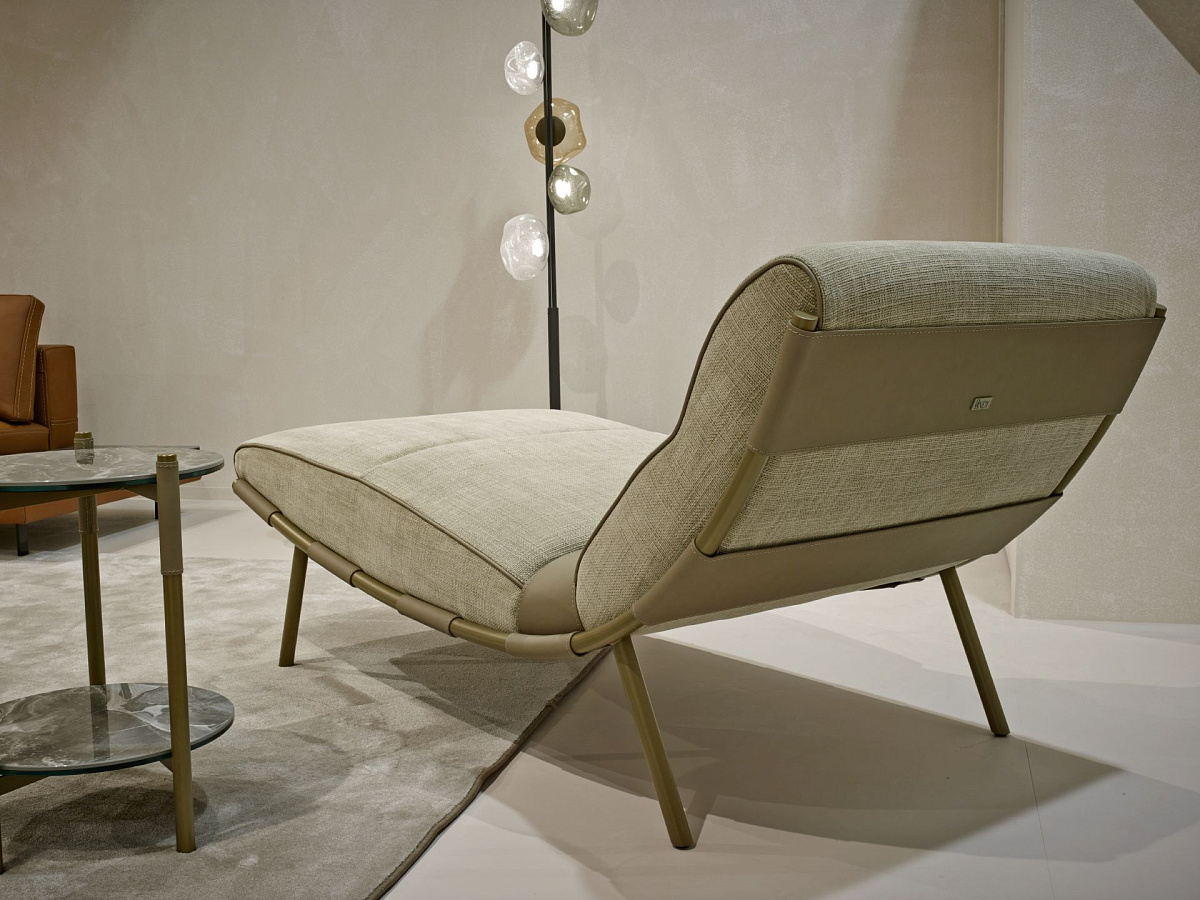 Шезлонг Cruise имеет металлическую раму, доступную в различных отделках, что позволяет создавать сложные комбинации с ремнями из кожи; эргономичная и удобная подушка выполнена из плотного полиуретана с кожаными профилями, которые дополняют ее по бокам. Шезлонг Cruise-это универсальный и элегантный предмет вносит стиль и гламур в любую домашнюю обстановку.