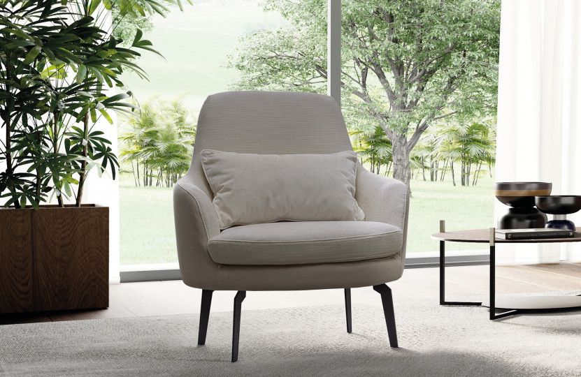 Современное минималистичное кресло LeCOMFORT Salotti AIR с высокой спинкой и изогнутыми подлокотниками.