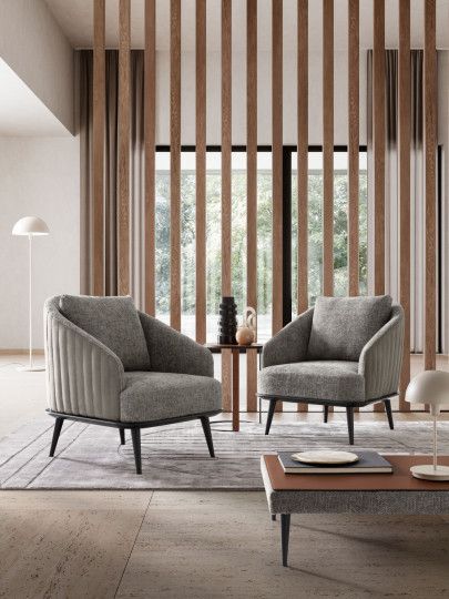 Очарование кресла LeCOMFORT Salotti LALA заключено в его оригинальной внешней структуре: спинка и подлокотники сливаются в своего рода футуристическую лестницу комфорта, имитированную вертикальной строчкой, которая создает мягкое объятия вокруг просторного сиденья.