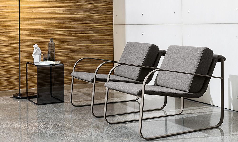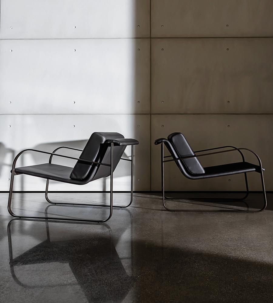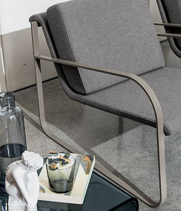 Большая и одновременно лёгкая рама из полированной нержавеющей стали или лакированного металла поддерживает удобное сиденье, обтянутое лицевой или искусственной кожей, доступной в различных цветах.
