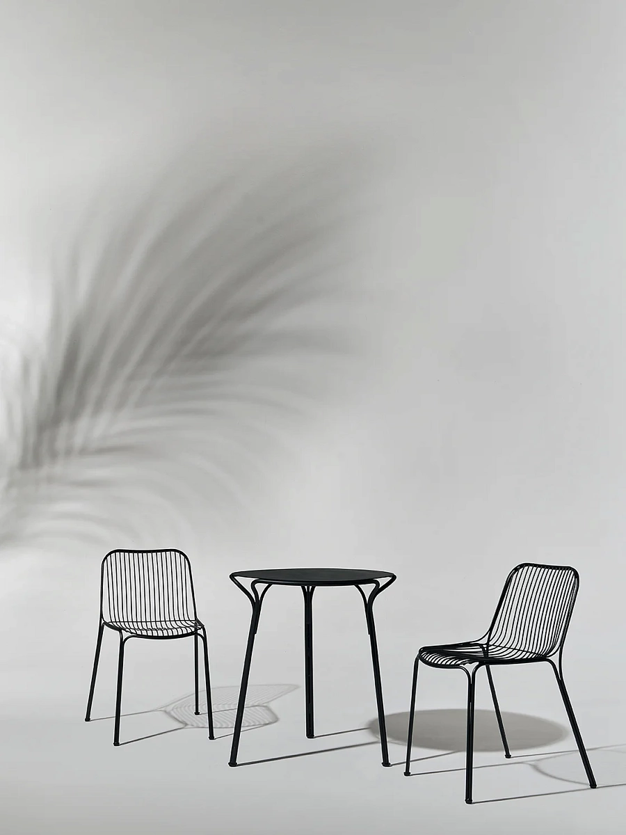 В HIRAY используется металл для процесса сварки проволокой ради придания ему формы. Результатом является важный и функциональный продукт, который, тем не менее, богат эмоциями. Металлические проволоки образуют четкие, но легкие структурные части стула коллекции, стула с подлокотниками, стола для бистро, кресла, дивана и приставного столика. Различные изделия представлены в белом, бордо, черном и зеленом цветах.