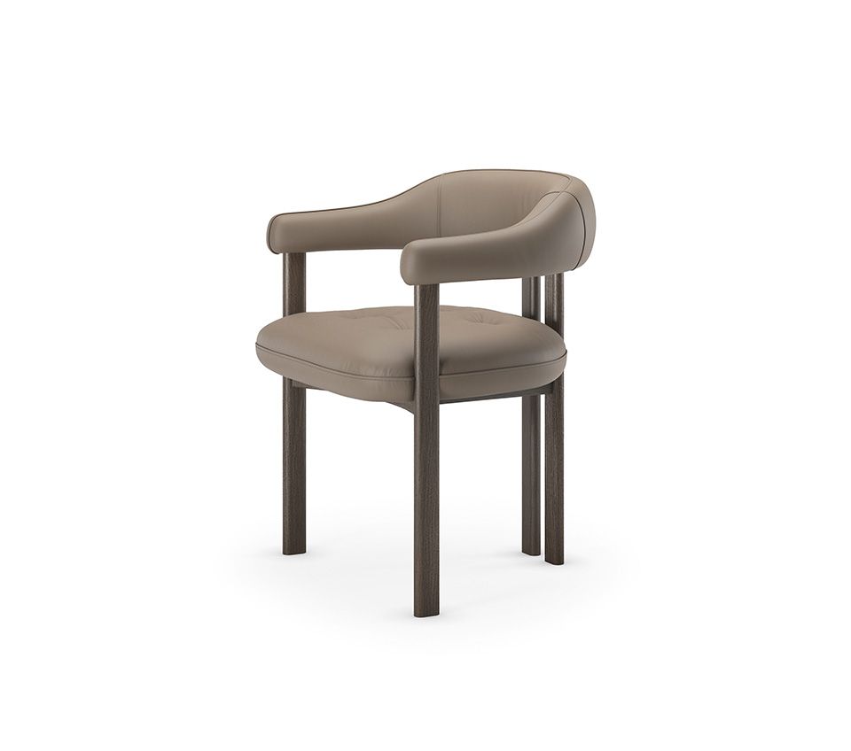 Его уникальная конструкция включает сиденье и обволакивающую подушку, которая соединяет спинку с подлокотниками. Благодаря полой структуре эта широкая подушка обеспечивает невероятный комфорт. Элемент декорирован четырьмя отстрочками, которые создают мягкий и изысканный эффект стежки «капитоне».