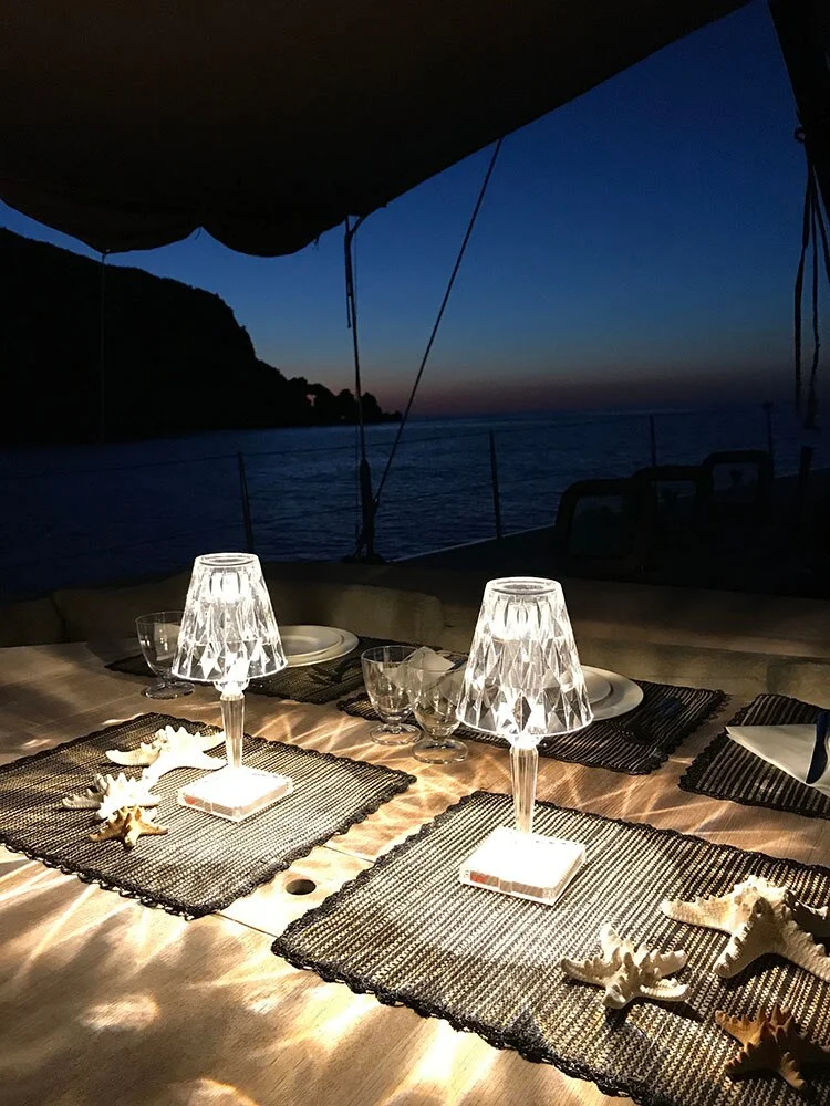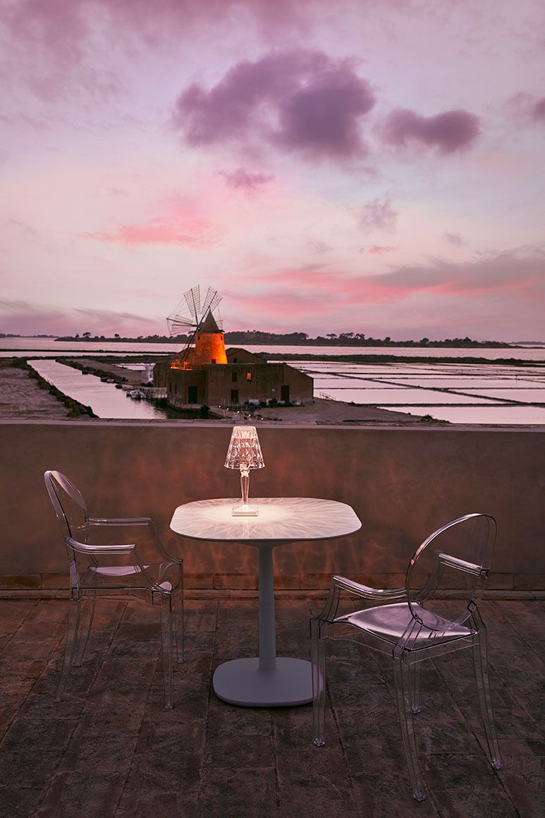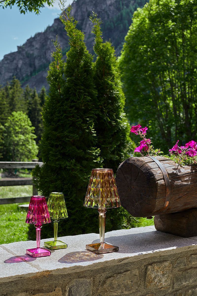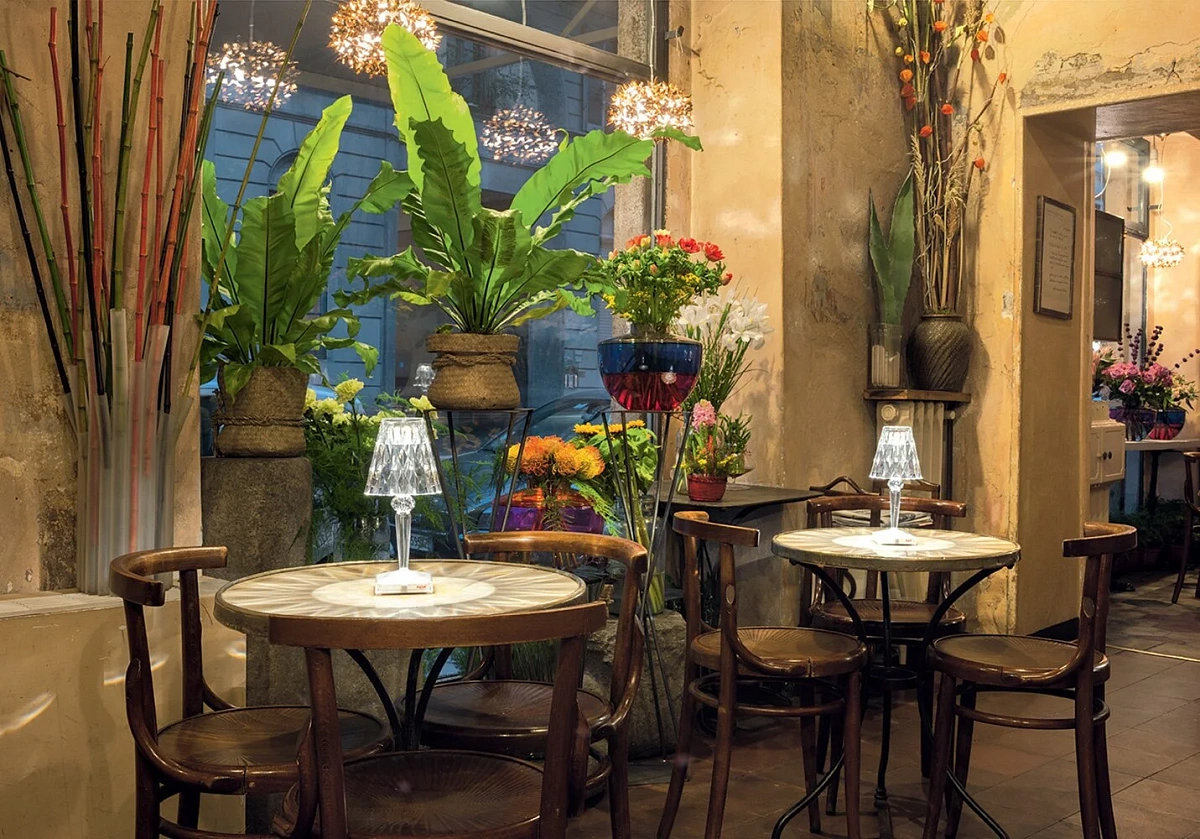 Battery представляет собой компактную настольную лампу, отличающуюся инновационной особенностью: она на 100% перезаряжается благодаря простой электрической вилке и обеспечивает до восьми часов автономной работы. Благодаря этому его легко перемещать, он идеально подходит для временных контрактных установок, использования в кафе или ресторанах под открытым небом.