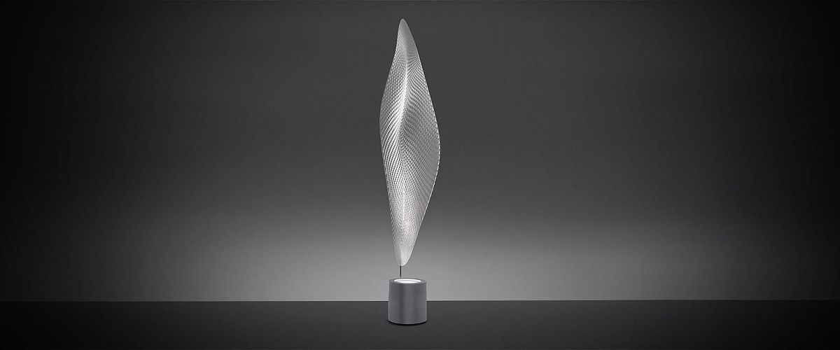 Торшер Artemide Cosmic Leaf Floor с прозрачным метакрилатным плафоном, хромированным стержнем и металлическим основанием, окрашенным в серый цвет. Рассеянное освещение. Для лампы с рефлектором G53. С переключателем на кабеле.