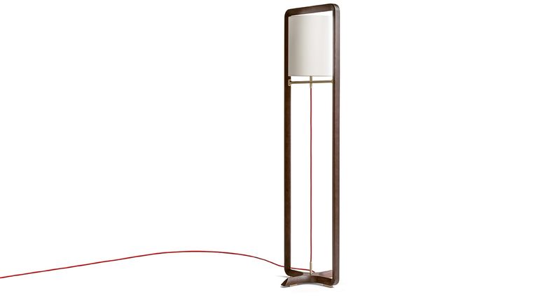 Напольный светильник Fidelio представляет собой простой прямоугольник, вырезанный из массива ясеня цвета мокко или венге, с треугольным профилем. Светильник естественно вписывается в данную геометрическую структуру с двухслойным абажуром, где внешний слой выполнен из холста, а внутренний — из ПВХ. Металлические детали выполнены из матовой стали с гальванической обработкой и отделкой под натуральную латунь.