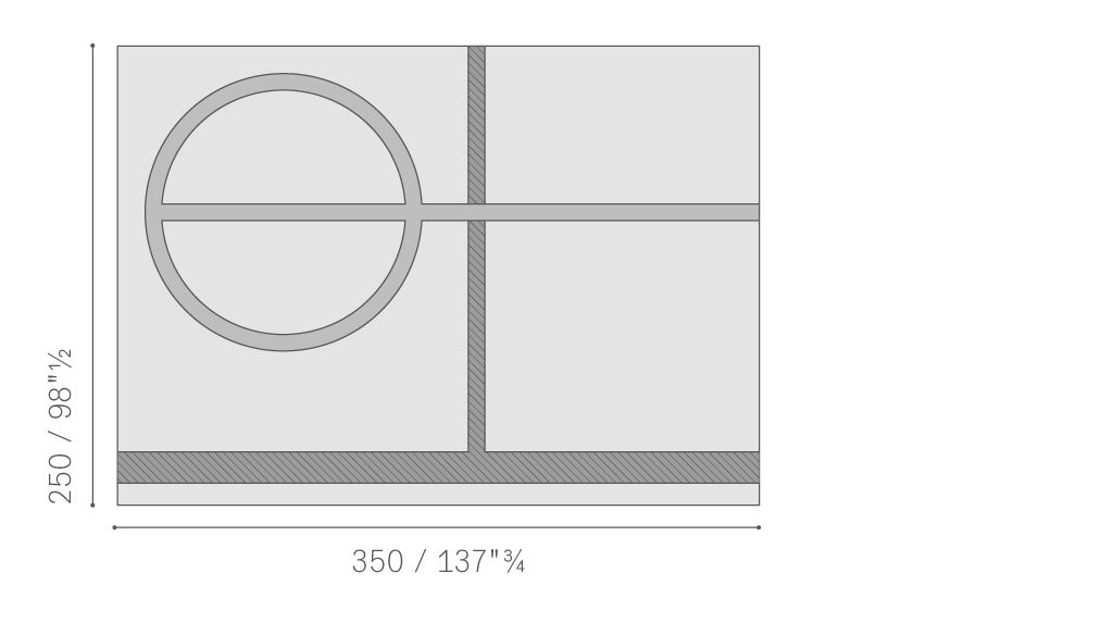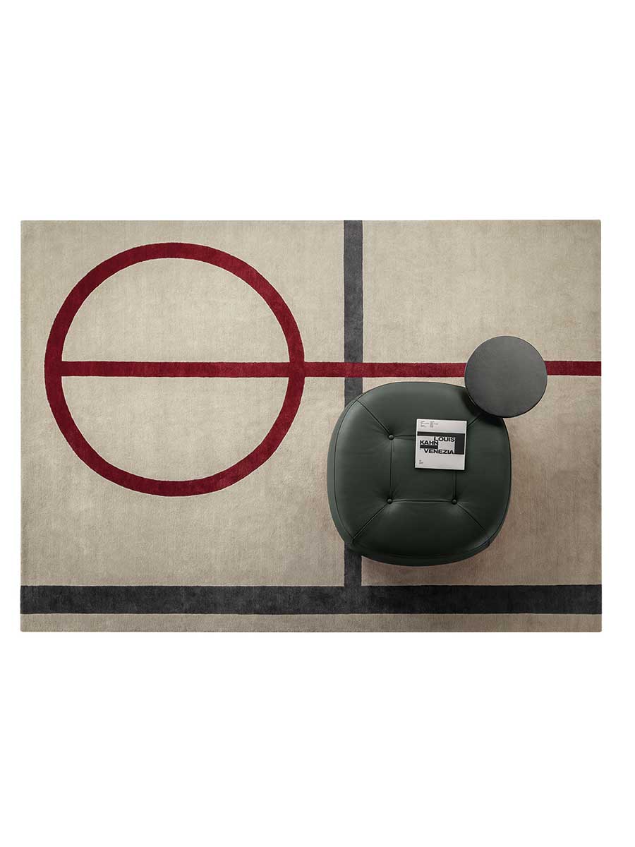 У ковра Billie строгий, почти конструктивистский дизайн, занимающий большую часть поверхности. Два простых рисунка на нейтральном фоне: один насыщенного красного цвета, образованный кругом и вертикальной линией, и другой, антрацитово-серого цвета, состоящий из двух перпендикулярных линий. Результат — ковёр с сильным формальным балансом и заметным визуальным эффектом. Billie доступен только в одном размере, 250×350 см, и в одном цветовом варианте. Украшение из шерсти ручной работы со всех четырёх сторон.