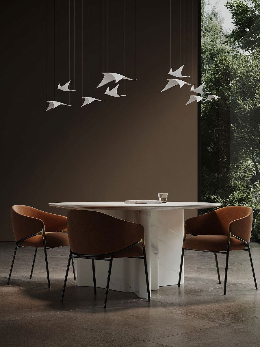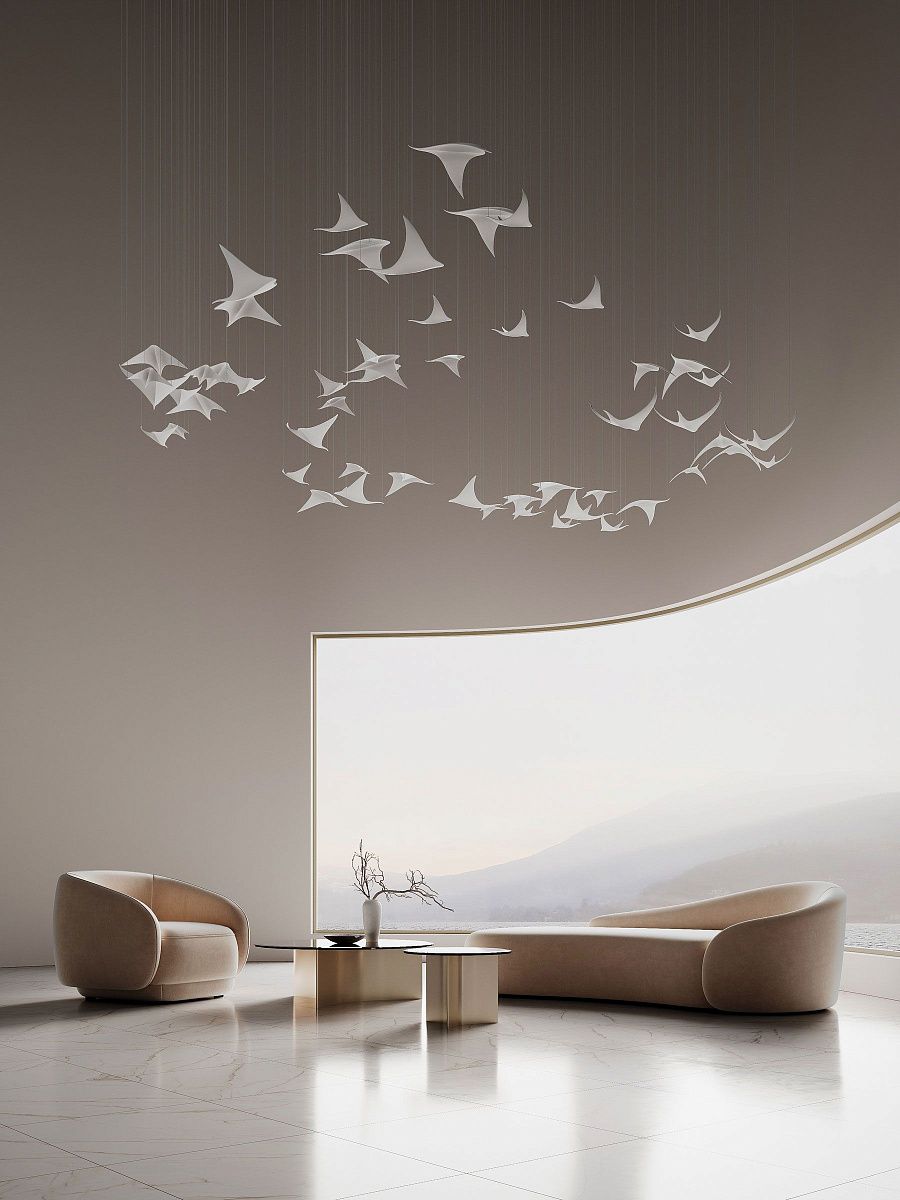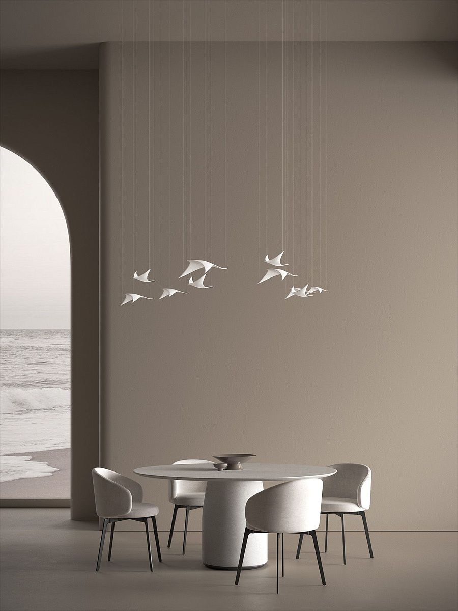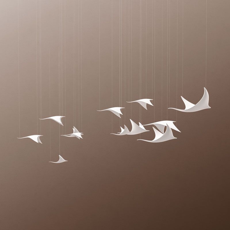 Коллекция Mireya представляет собой подвесные инсталляции, созданные из креативных элементов, вдохновленных морем и изящными, плавными формами скатов. Органичные формы фарфоровых элементов создают ощущение плавного движения, наполняя пространство жизнью и спокойствием. Каждое изделие отлито из высокотемпературного классического фарфора — чистого, нежного и в то же время удивительно прочного материала.