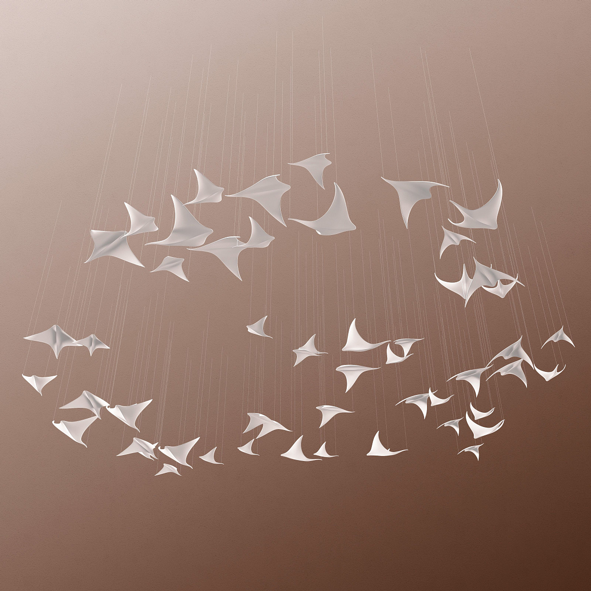Коллекция Mireya представляет собой подвесные инсталляции, созданные из креативных элементов, вдохновленных морем и изящными, плавными формами скатов. Органичные формы фарфоровых элементов создают ощущение плавного движения, наполняя пространство жизнью и спокойствием. Каждое изделие отлито из высокотемпературного классического фарфора — чистого, нежного и в то же время удивительно прочного материала.