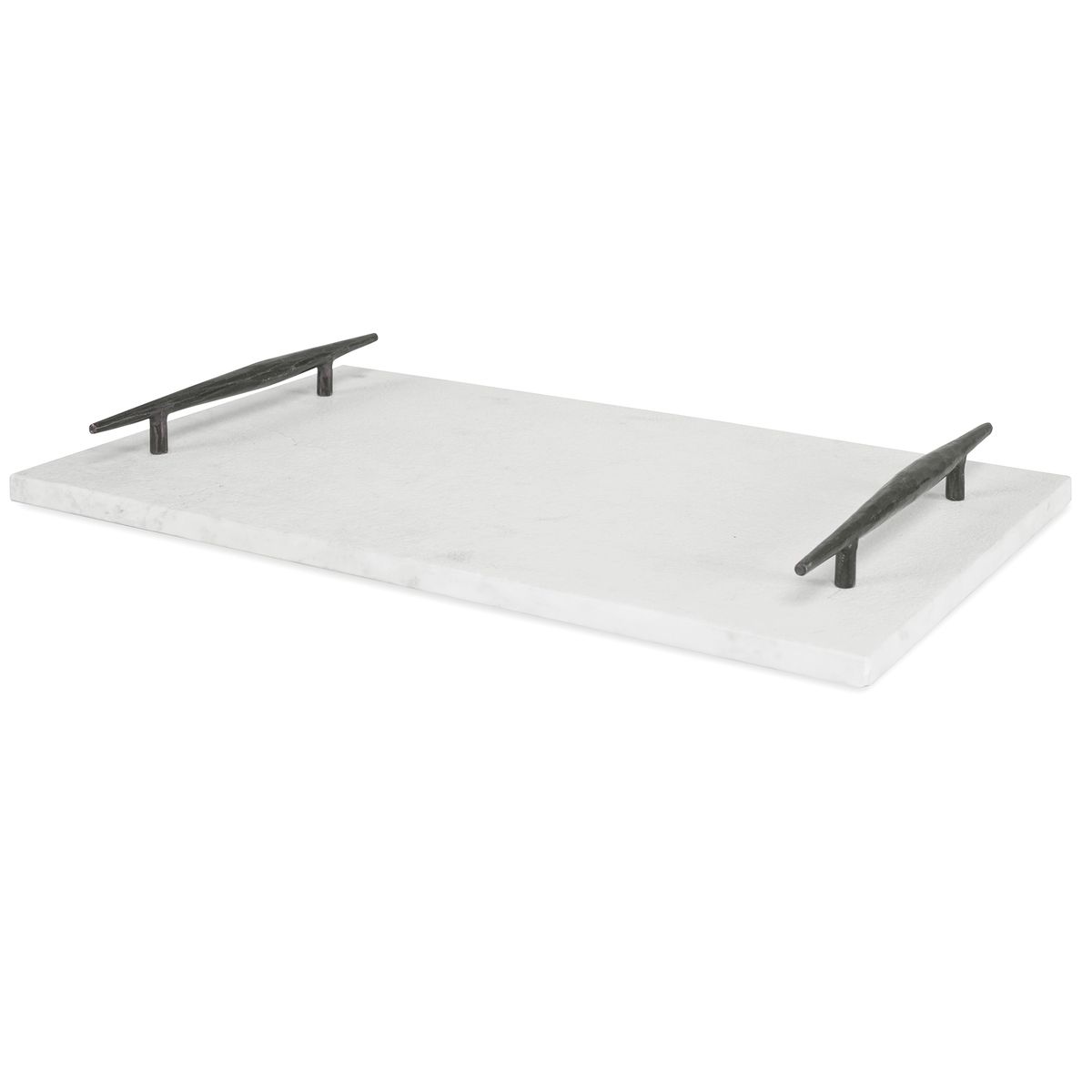 Вам понравятся ручки этого подноса. Кованое железо ручной работы обеспечивает удобный захват, а заостренные концы создают стильный деревенский вид. Основание из чёрного мрамора высотой 60 см украшено едва заметной полоской.