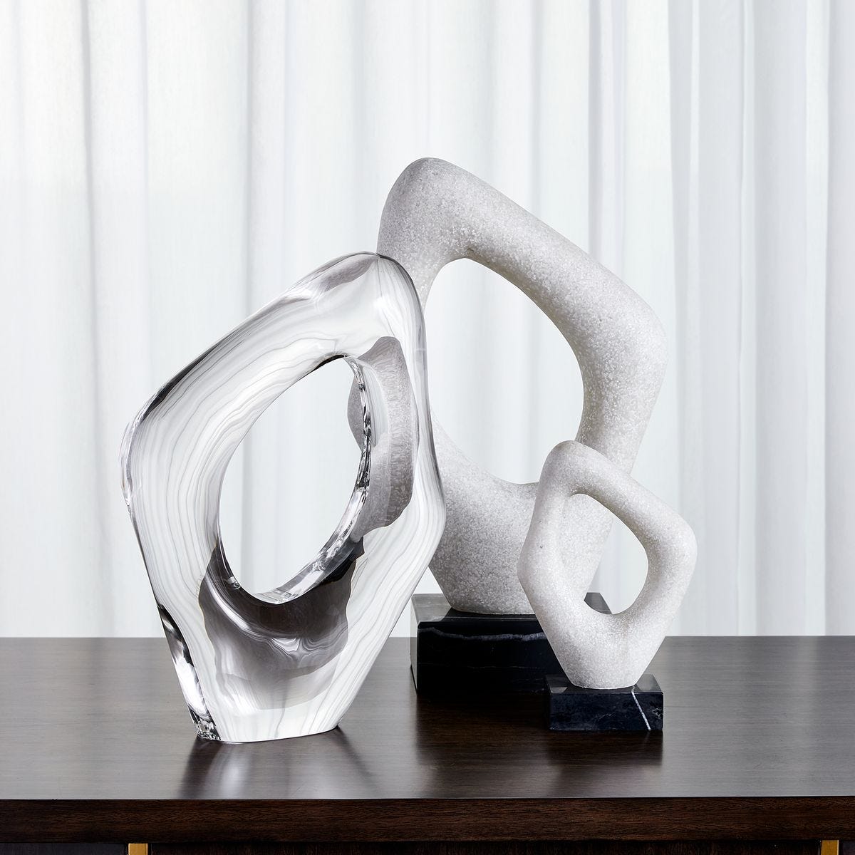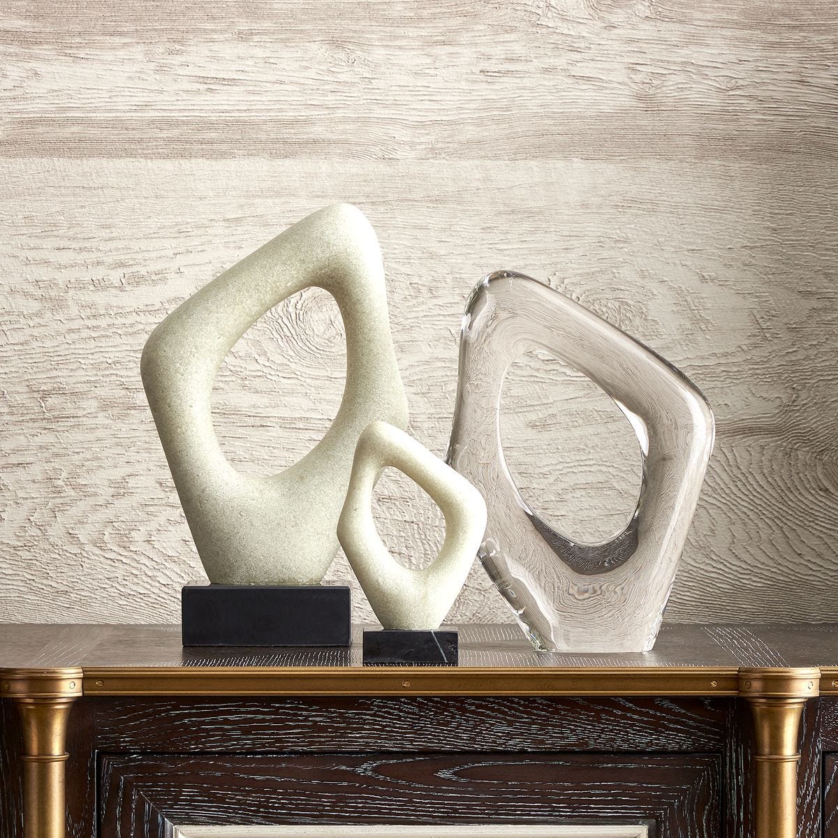 Скульптуры «Каменная пещера», вдохновлённые природными формами, представляют собой мягкие геометрические формы из искусственного камня цвета слоновой кости, точно имитирующего мрамор Тасоса, с основаниями из чёрного мрамора. Они отлично подойдут для многоуровневых экспозиций на книжных полках или столах, а их непринуждённый вид легко впишется в любой интерьер. Размеры: S – 5x8x2, L – 9x15x4.