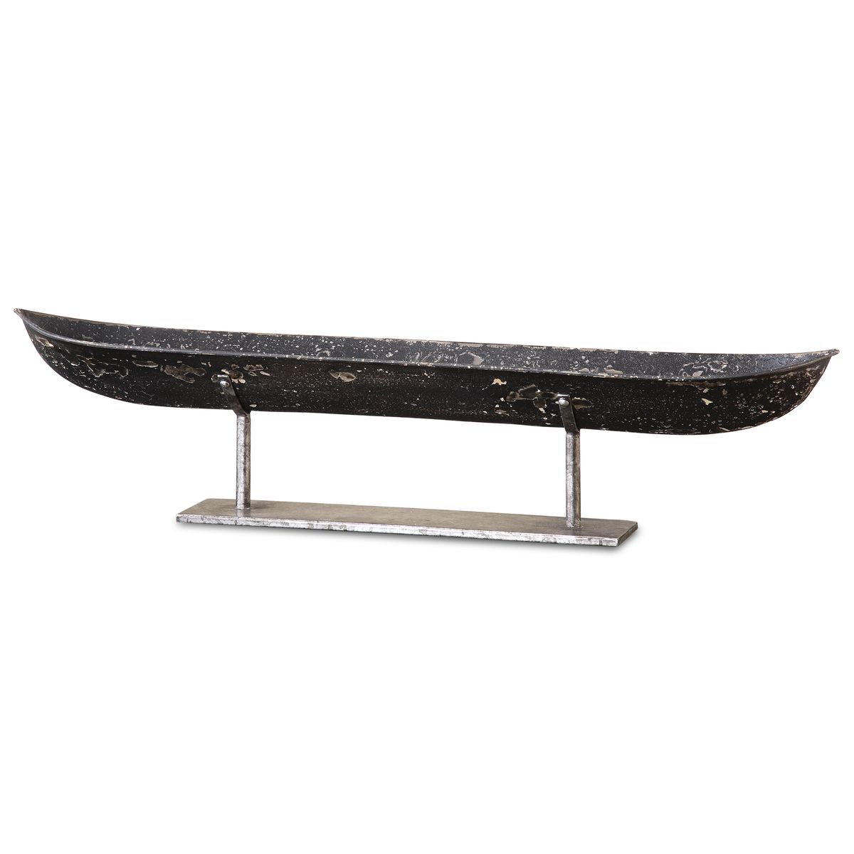 Изготовлен из сильно состаренного черного металла с серебристым оттенком и имеет серебряную подставку.