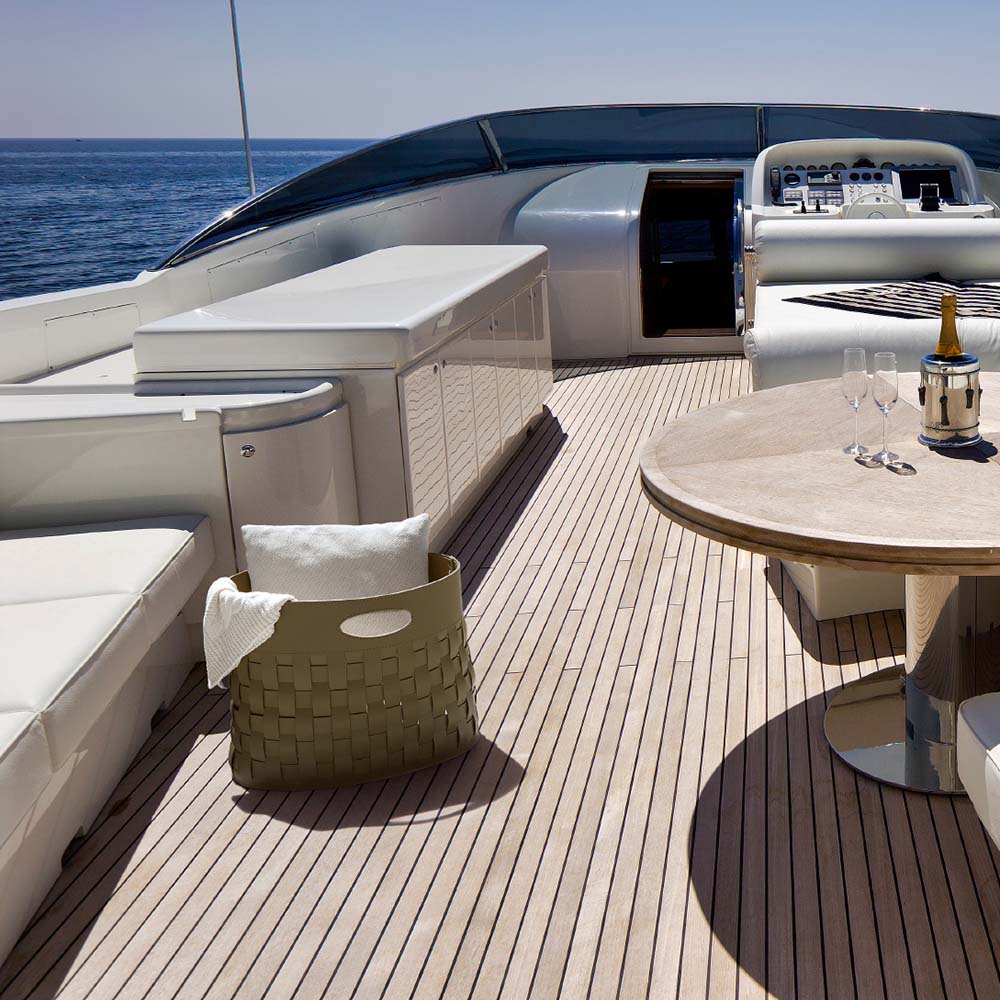 Плетеная кожаная корзина для хранения THESA — новейшее предложение LIMAC Design® Class среди многофункциональных контейнеров для дома, отелей и морского транспорта.