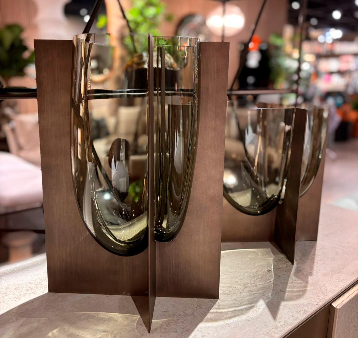 Bouble от Adriani & Ross — стильная ваза из дымчато-серого муранского стекла с металлической структурой.