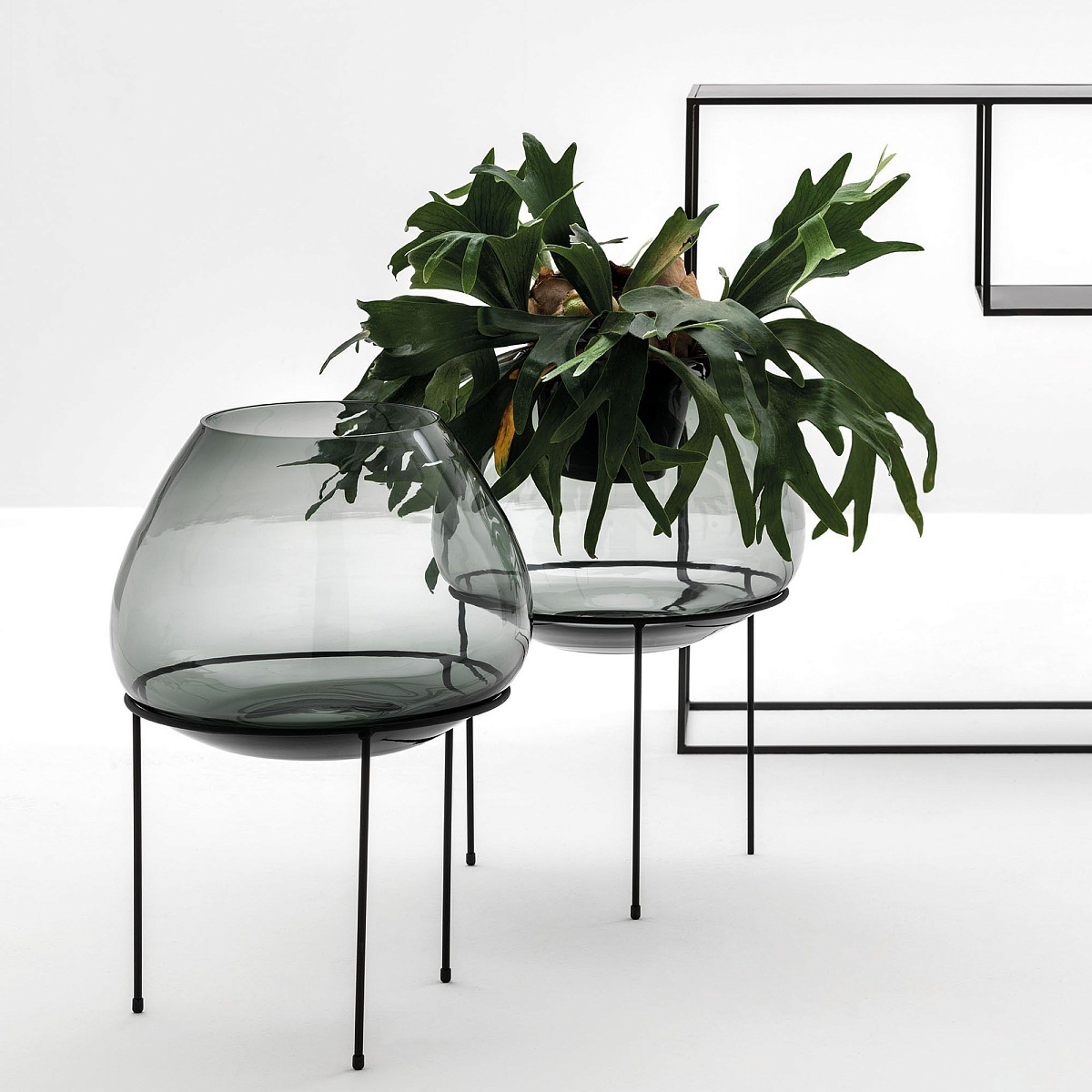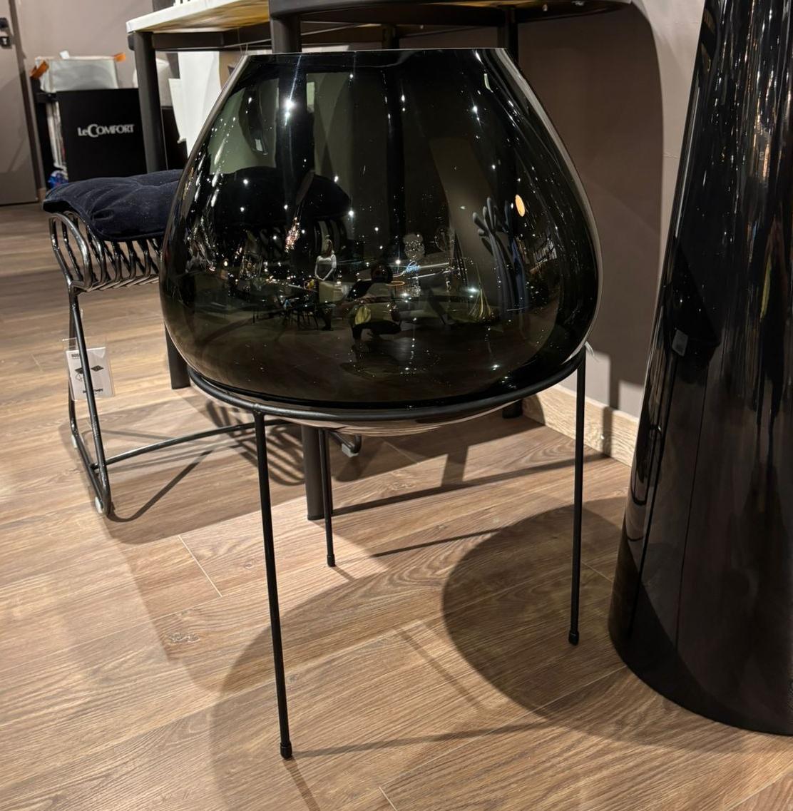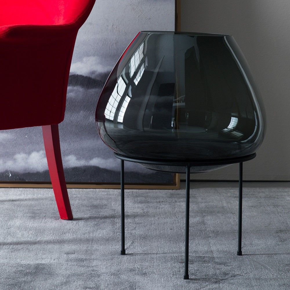 Гонг Adriani & Rossi — это декоративная ваза, представляющая собой округлый сосуд из дымчатого стекла, часто сочетаемую с металлическим основанием. Она известна своими извилистыми геометрическими формами, что делает её современным предметом домашнего декора. Ваза может служить самостоятельным декоративным элементом или сочетаться с металлическим основанием, обычно антрацитового цвета, для создания более структурированного образа.