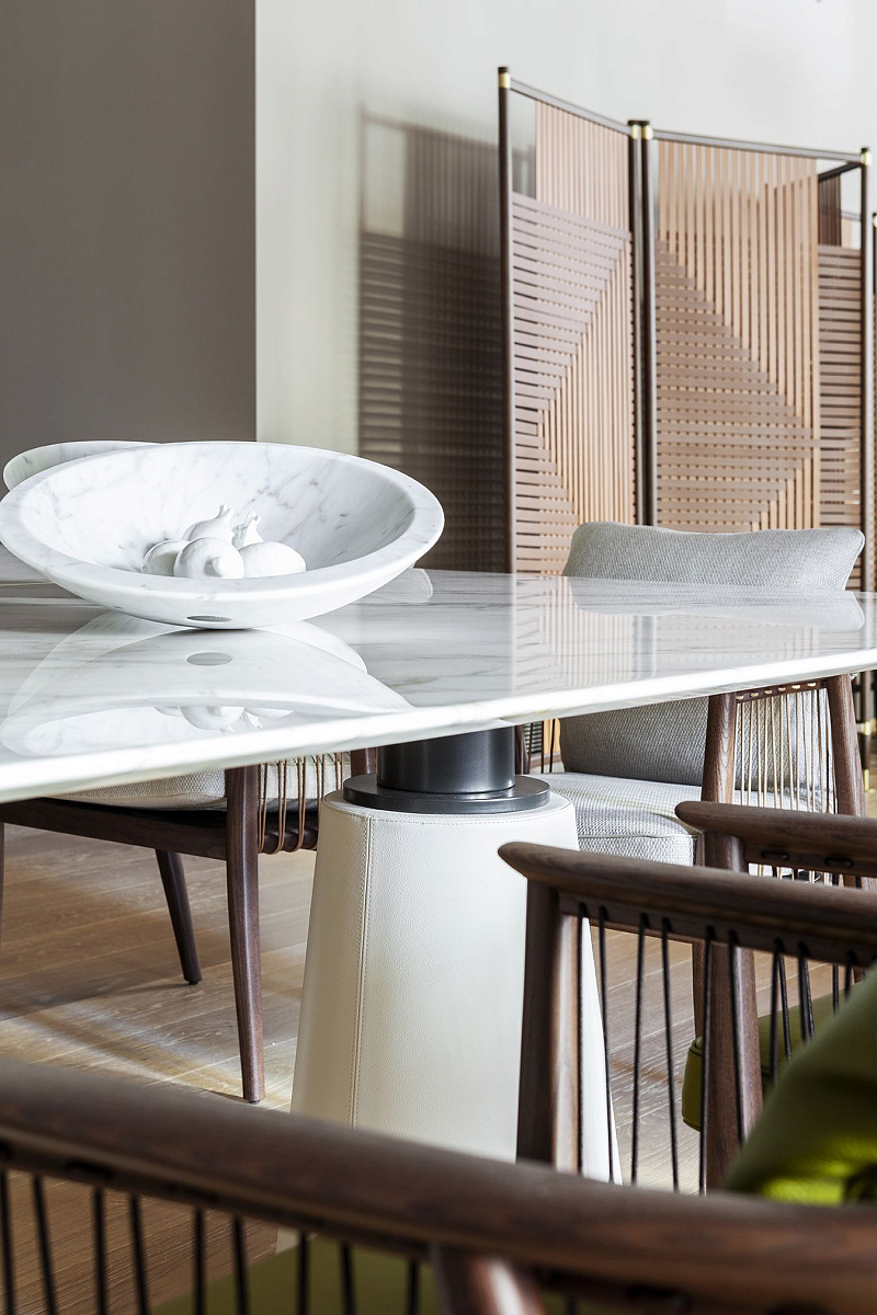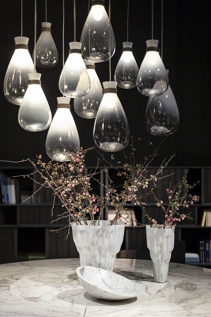 Ассиметричная ваза Pura, созданная мастером с применением технологий компьютерной резки и последующей ручной шлифовки, выполнена из камня с полусферической поверхностью. Нижняя часть снабжена латунной пластиной с гравировкой подписи дизайнера и логотипа Poltrona Frau.