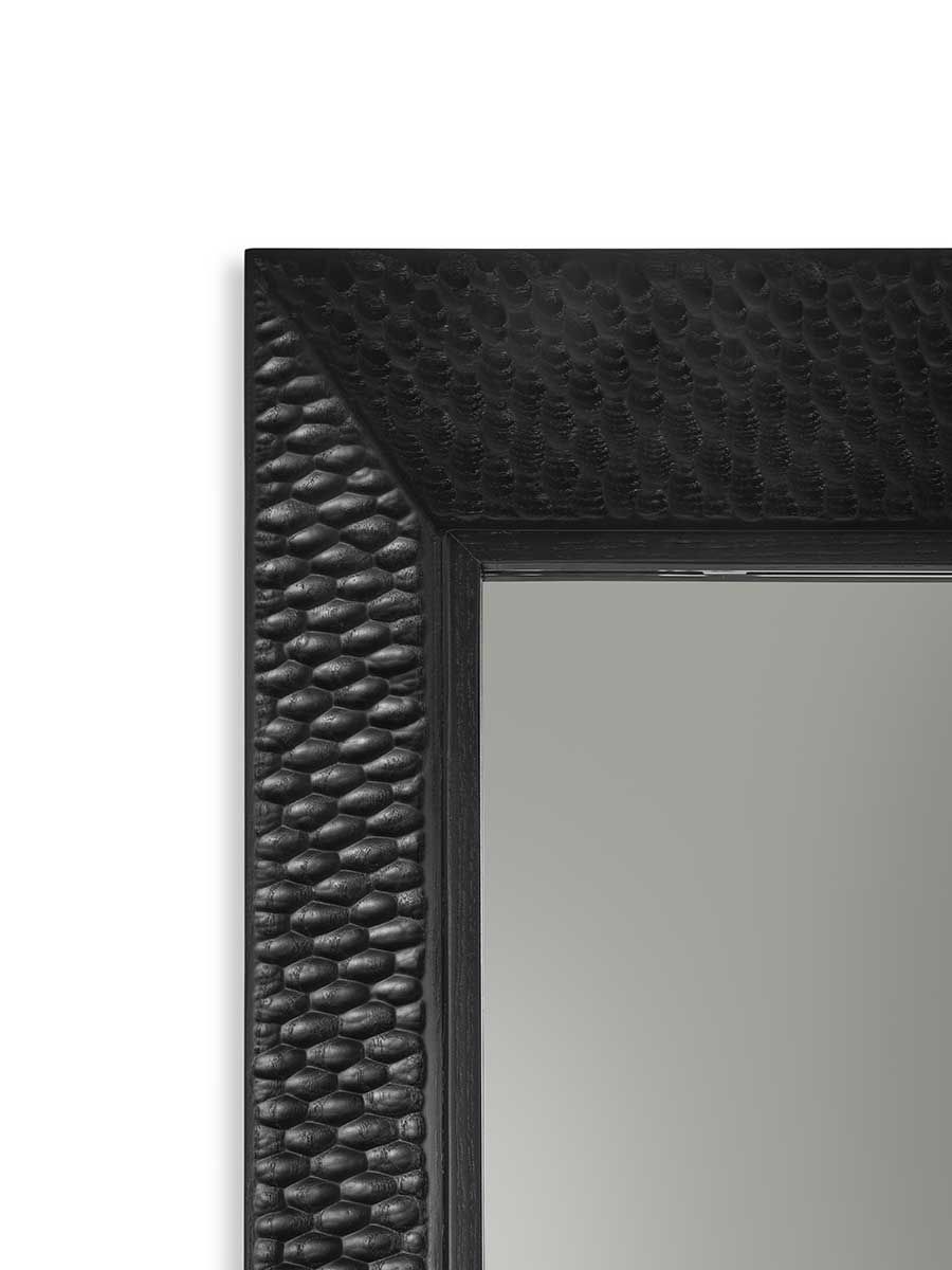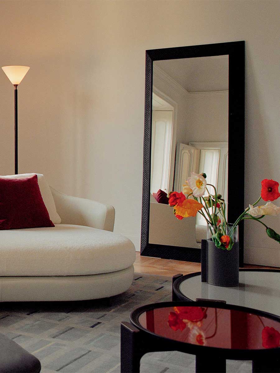 Напольное зеркало Duo — это полноразмерное зеркало в элегантной раме из массива ясеня с ручной отделкой, придающей изделию красивый трёхмерный вид. Высота 200 см, идеально подходит для размещения в спальне или коридоре.