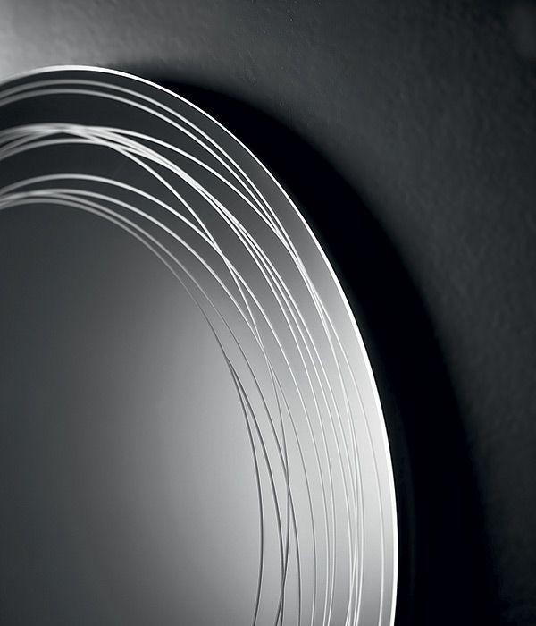 Специальная гравировка зеркала Vertigo делает его сценографическим объектом, способным придать помещению нотку оригинальности.