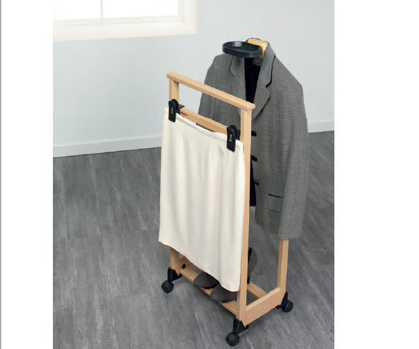 Foppapedretti L'indossatore - это передвижная костюмная напольная вешалка из массива бука. Одежда на таком стенде хорошо сохраняет свой внешний вид, остается опрятной, аккуратной и гладко выглаженной, прекрасно проветривается за счет притока воздуха с четырех сторон. Настоящая находка для вашего ежедневного гардероба, так как все предметы одежды хорошо видны, компактно сложены и их удобно доставать, быстро одеваться, что экономит Ваше время. Это Ваш домашний камердинер! Вешалка свободно и просто передвигается благодаря колесикам, не оставляет на полу царапин.