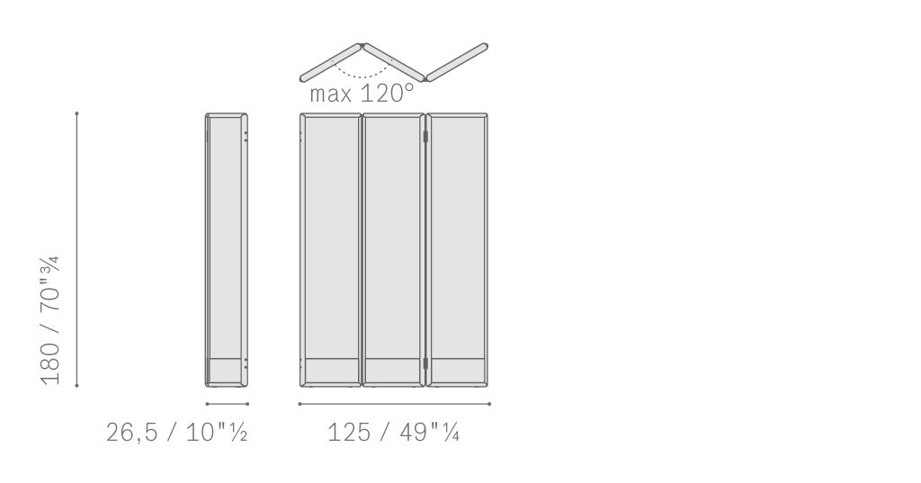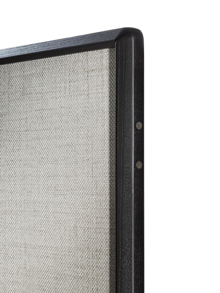 Перегородка DUO представлена в виде 3-, 4- или 5-модульной конструкции высотой 180 см, с каркасом из массива ясеня и пустой средней панелью. Ширина модулируема: возможны обои, ткань или кожа по запросу. Регулировка высоты ножек производится с помощью колёсиков. Металлические детали отделаны бронзированной латунью.