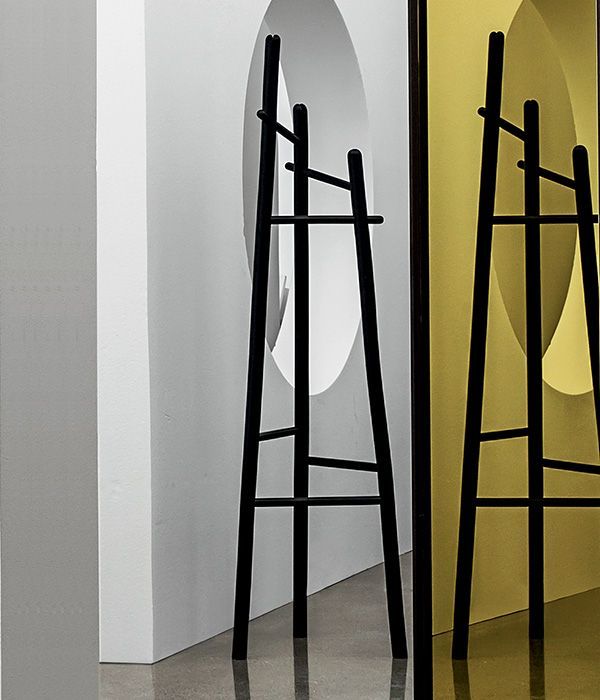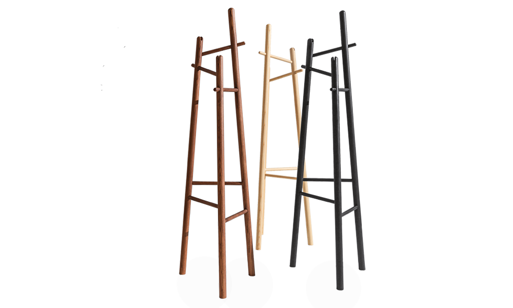 между собой направляющими, позволяющими вешать вешалки. Вешалка для одежды Sakti из ореха, натурального дерева и черного ясеня.