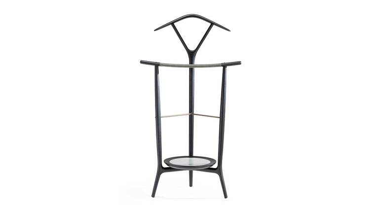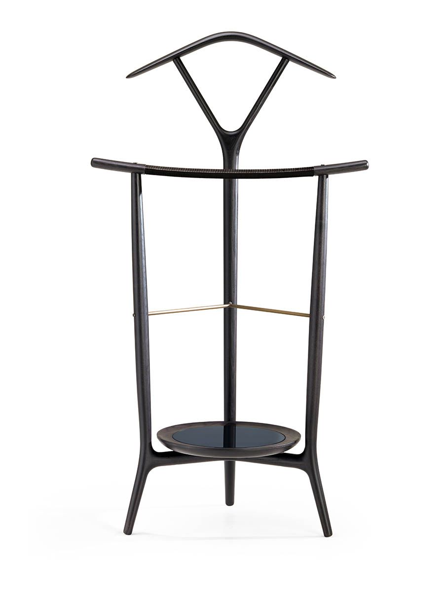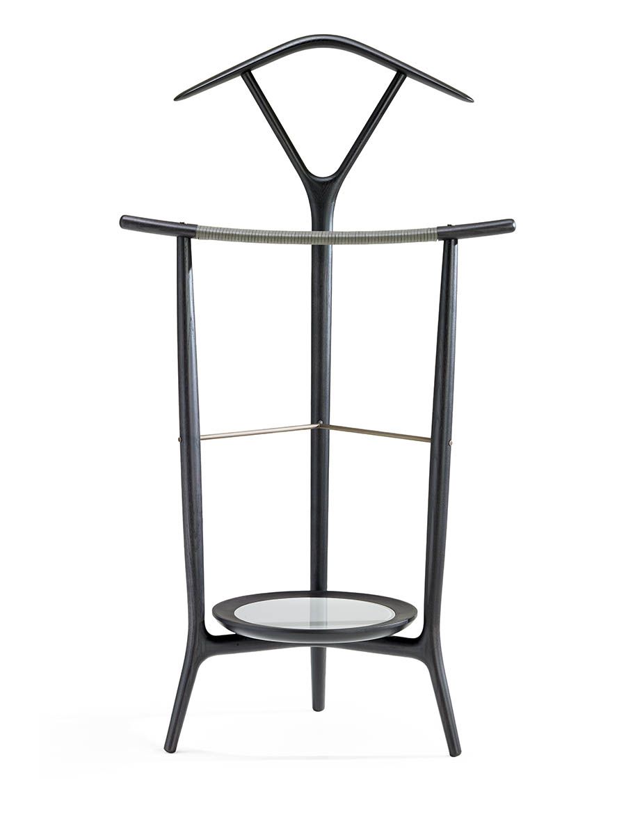 Вешалка DUO представляет собой модернизированную версию классического мужского гардероба XVIII века. Сделана из массива ясеня и имеет трёхопорную конструкцию: задняя стойка с V-образным ответвлением, на котором установлена вешалка для одежды, и две передние стойки, немного согнутые для брюк, напоминающие японские мечи-катаны. Доступна в различных вариантах отделки.