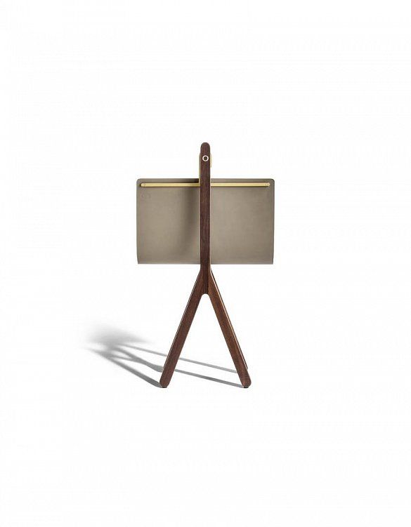 Газетница Ren от Poltrona Frau – современная и функциональная модель, которую выражает лаконичность форм и абсолютное качество натуральных материало: деревянный каркас из березы, отделанной шпоном ореха, держатель для газет и журналов выполнен из натуральной кожи и дополнена поддерживающими элементами из полированной латуни.