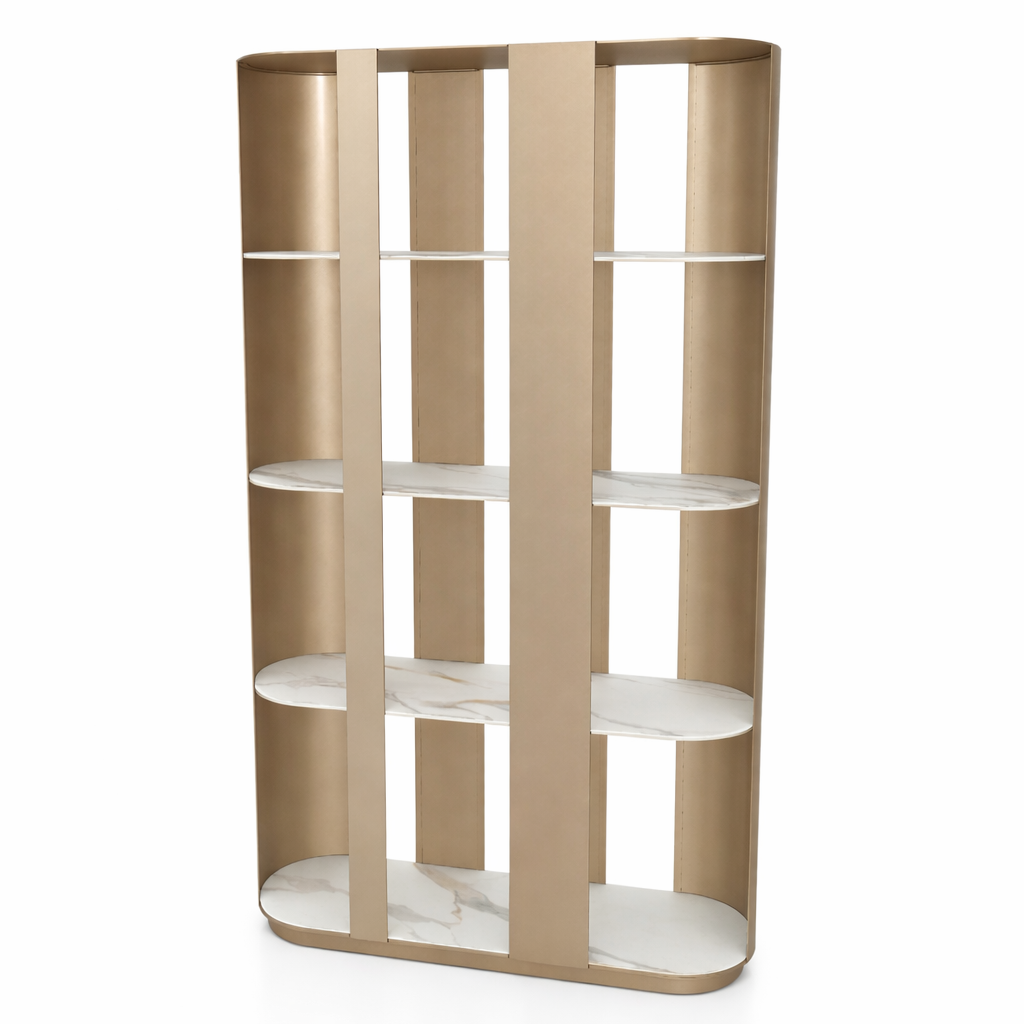 Книжный стеллаж Helena — это домашняя микроархитектура: объект, который разделяет, соединяет и рассказывает. Его овальное, органичное основание разрушает жёсткость традиционного книжного шкафа. Смещённые несущие колонны, расположенные в элегантной игре заполненного и пустого между передней и задней сторонами, создают перспективы, визуальные фильтры и кулисы. Одни предметы видны, другие скрыты — не случайно, а по замыслу. Взгляд направляется через переменную геометрию, изменяющуюся в зависимости от положения наблюдателя и света, играющего на полках. Идеален как скульптурная перегородка в напольной версии или как функциональный элемент, структурирующий пространство, в настенной версии.