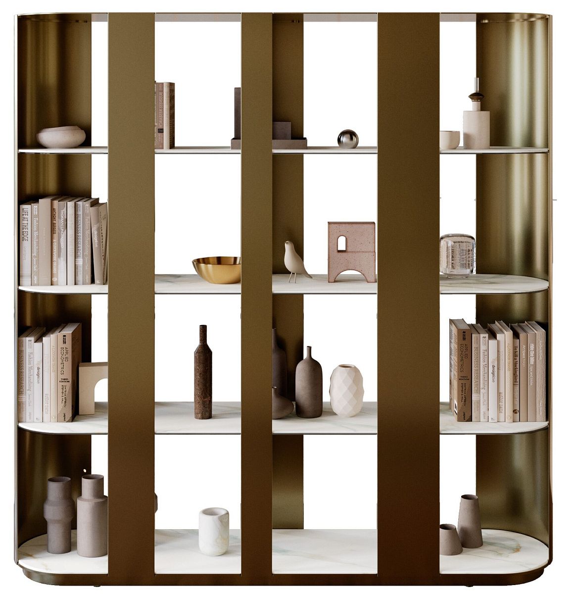 Книжный стеллаж Helena — это домашняя микроархитектура: объект, который разделяет, соединяет и рассказывает. Его овальное, органичное основание разрушает жёсткость традиционного книжного шкафа. Смещённые несущие колонны, расположенные в элегантной игре заполненного и пустого между передней и задней сторонами, создают перспективы, визуальные фильтры и кулисы. Одни предметы видны, другие скрыты — не случайно, а по замыслу. Взгляд направляется через переменную геометрию, изменяющуюся в зависимости от положения наблюдателя и света, играющего на полках. Идеален как скульптурная перегородка в напольной версии или как функциональный элемент, структурирующий пространство, в настенной версии.