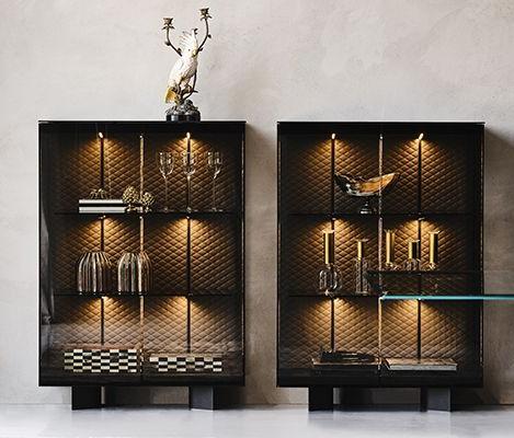 Самые ценные предметы выставляются на показ и одновременно хранятся в драгоценном серванте Boutique. Внутренние полки из стекла, задняя стенка, покрытая стеганой кожей, и лампочки LED - все это призвано подчеркнуть то, что хранится в этом мебельном контейнере придавая гостиной изысканный вкус. Коллекция дизайнерских сервантов состоит из двух 4-дверных версий с разной высотой и серванта Boutique Alta с 3-мя полками.