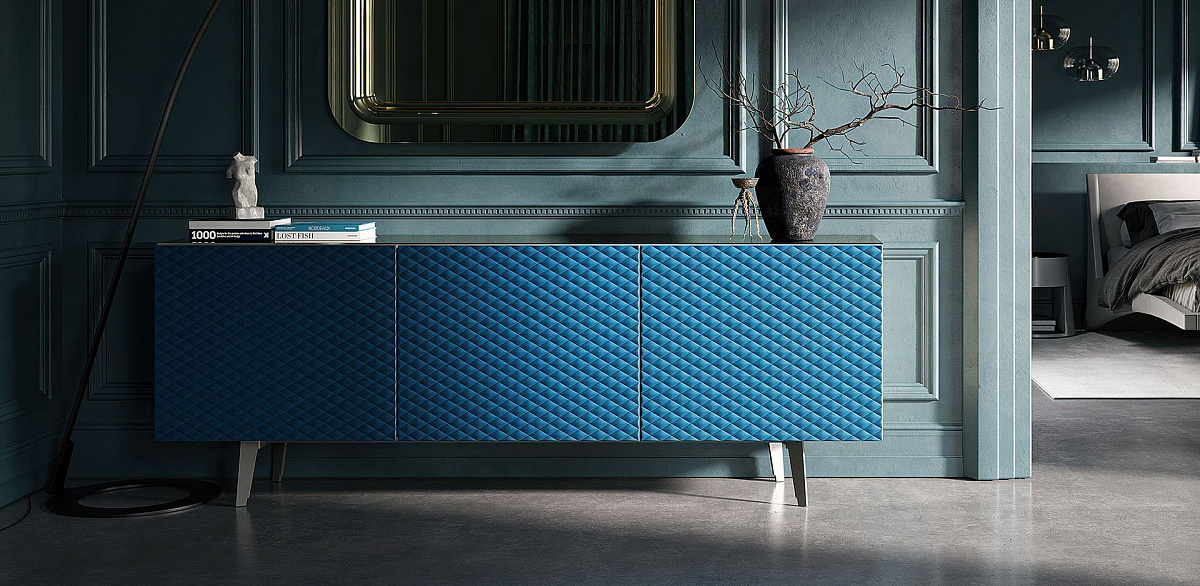 С его мягкой стеганой кожей или эко-кожей, комод Absolut делает жилую среду приятной и уютной. Дизайнерский шкаф, с 2 или 3 дверцами, изготовлен из лучших материалов, начиная с мягкой обивки передних створок. Выбирая из нескольких ценных покрытий и отделок, можно создать этот современный комод, в соответствии с собственным стилем столовой или гостиной.
