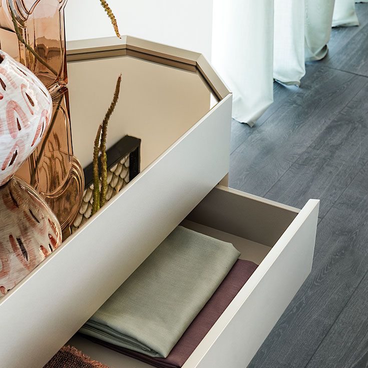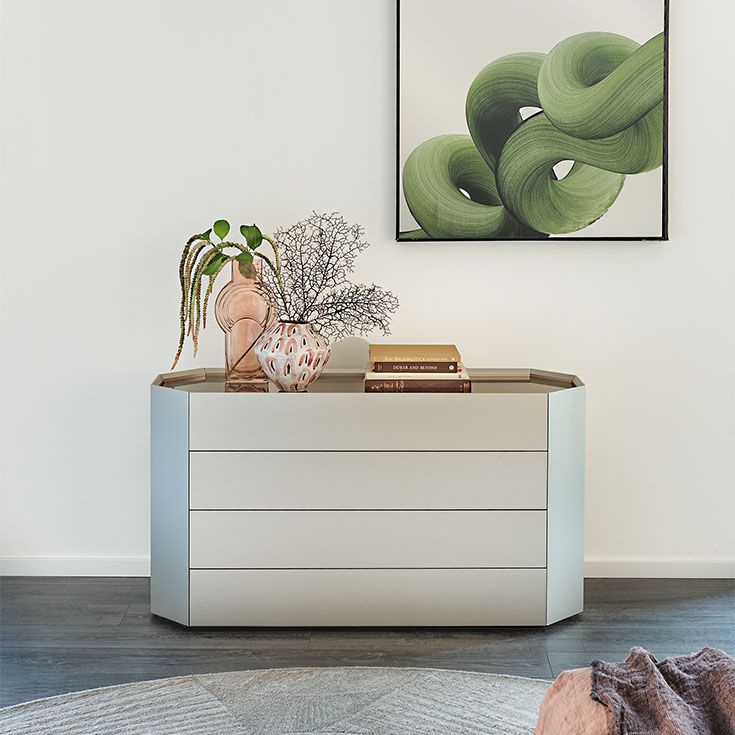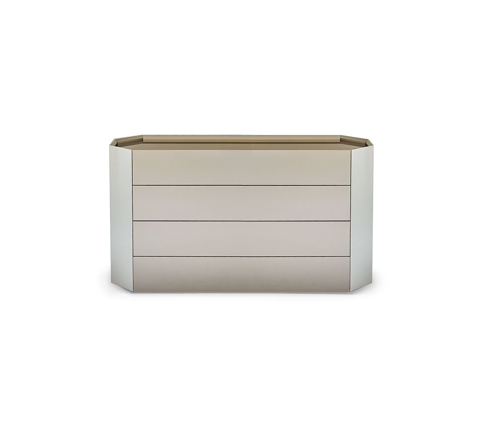 Скульптурный и геометрический, Chelsea - это комод современного дизайна, который гармонично вписывается в жилищную среду как в жилом, так и в контрактном дизайне интерьера. Этот минималистичный комод с эклектичной душой полон богатых деталей и эксклюзивной отделки, такой как стеклянный топ. В Chelsea имеются ценные внутренние полки из прозрачного стекла, идеально подходящие для хранения самых дорогих предметов.