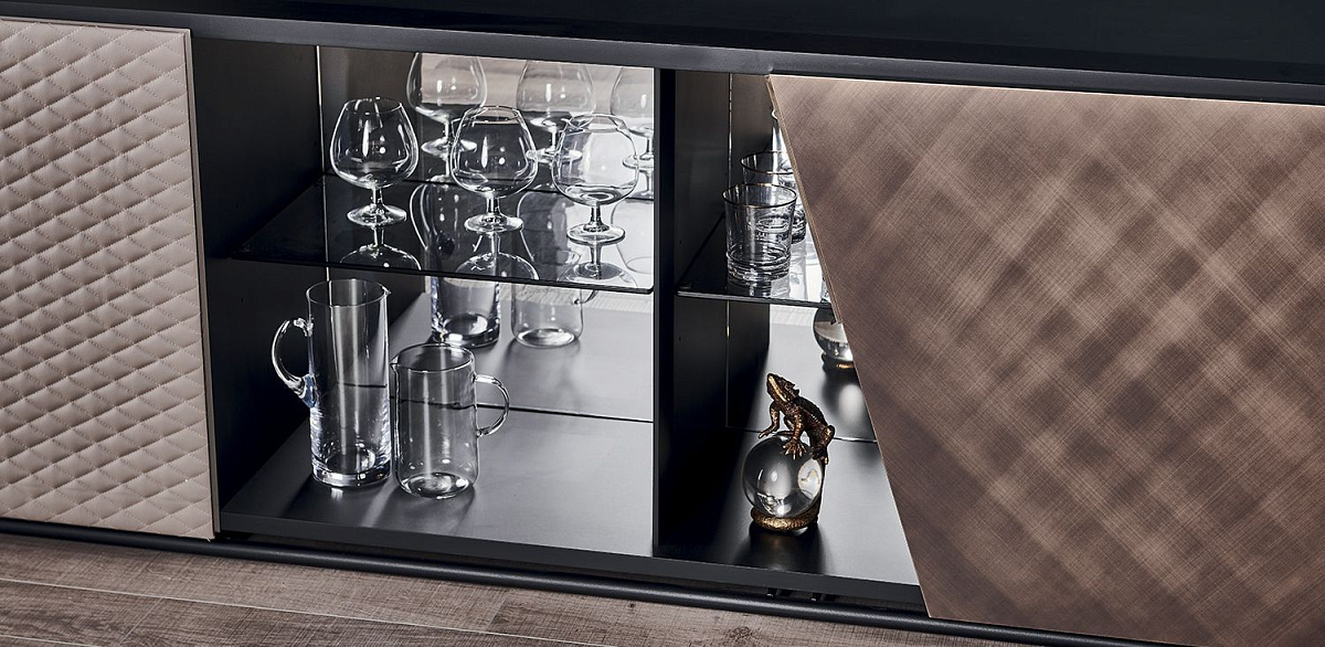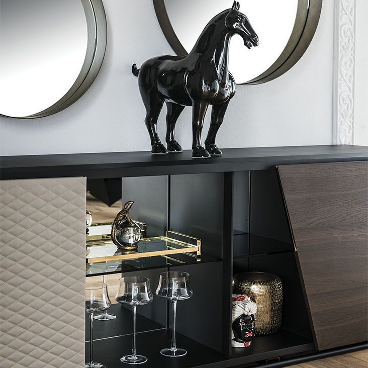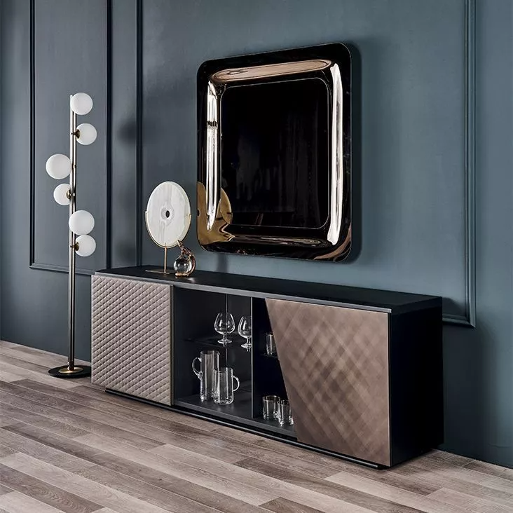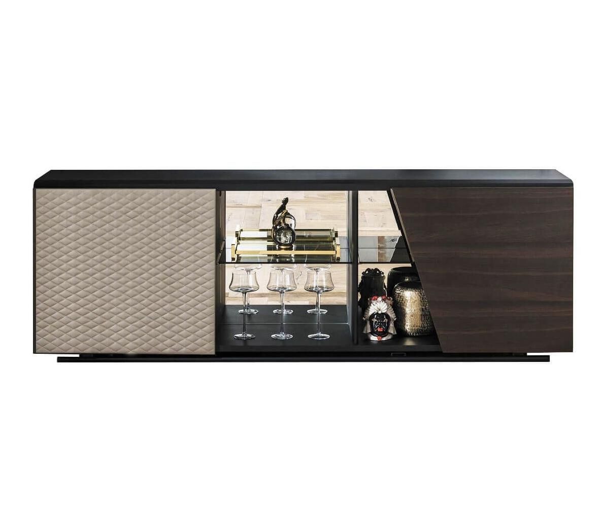 Великолепный комод и ТВ-консоль из коллекции Aston - это изящная мебель, которая придает индивидуальность гостиной, делая ее незабываемой. Особенность дизайнерского комода и современной ТВ-консоли Aston заключается в сочетании нескольких материалов и драгоценной отделки, которые создают идеально сбалансированную и утонченную, а также очень функциональную композицию. Открытые центральные полки позволяют дополнительно украсить комнату, выделяя самые дорогие нам предметы. В этом современном наборе мебели для гостиной с умелым мастерством сочетаются дерево, сталь и кожа или эко-кожа, которые вместе с ярким дизайном составляют современный, и в то же время изысканный, декор, благодаря изящной мануфактуре.
