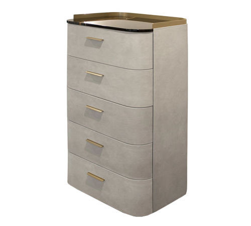 Коллекция комодов и тумбы с пятью выдвижными ящиками с уникальным и изысканным дизайном, призванная придать вашей спальне нотку роскоши и утонченности. Каждое изделие характеризуется высококачественными деталями: элегантные металлические профили, покрытые лаком, доступные в различных вариантах отделки, мягкие изгибы, отделанные кожей, - все это делает его не только функциональным элементом, но и настоящим произведением искусства. Независимо от размера и назначения мебели, от комода до сундука, мы поможем вам создать единый стиль вашей спальни.