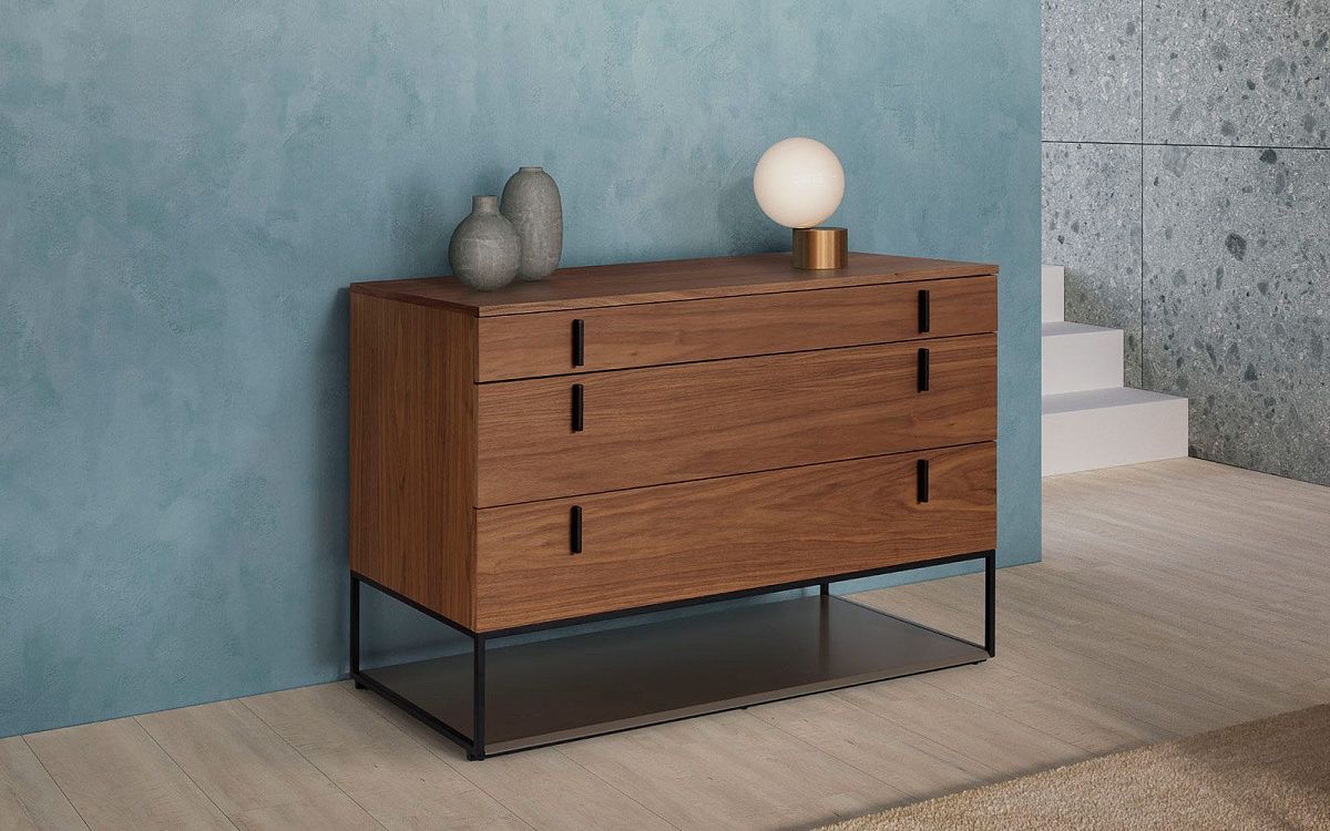 Комод Dedalo, выполненый из дерева на прочном металлическом основании, порадует любителей функционального дизайна. Удобство хранения обеспечит наличие трех вместительных выдвижных ящиков. Лаконичные формы и четкость линий подчеркнут интерьер любого стиля, привнося нотку современности и элегантности.