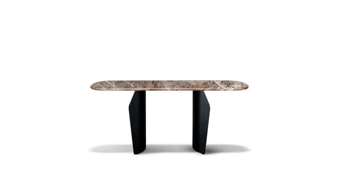 Универсальный и элегантный консольный столик Flame Console напоминает небольшой визуальный фон, который позволяет охватить различные контексты домашней жизни и места общего пользования в мире гостиничного бизнеса. Строгая столешница, являющаяся частью дизайна, вступает в диалог с двумя изогнутыми металлическими опорами, на которых она как бы подвешена. Столешница может быть выполнена из дерева, керамики или мрамора, а также в отделке, которая контрастирует с визуальной и структурной прочностью пары металлических ножек.